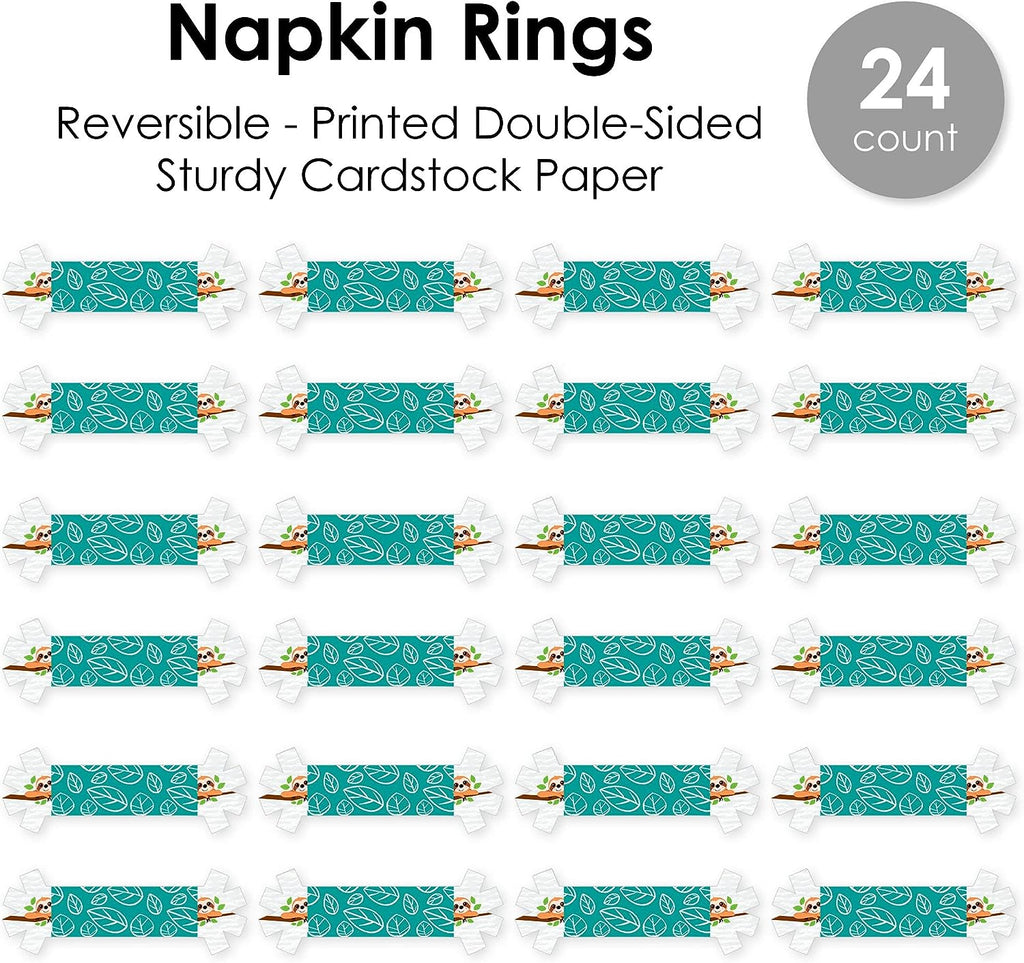 Let’s Hang - Sloth - Baby Shower or Birthday Party Paper Napkin Holder - Napkin Rings - Set of 24 is backordered and will ship as soon as it is back in stock.