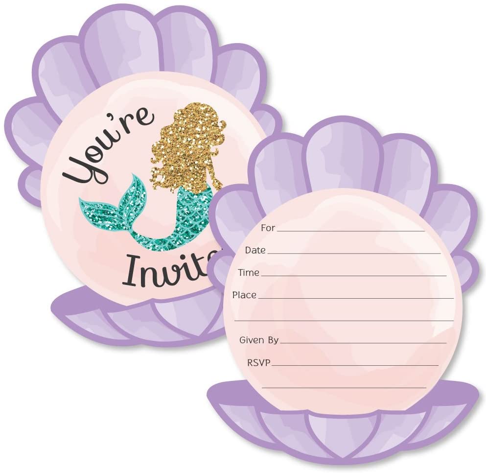 Let's Be Mermaids - Shaped Fill-In Invitations - Baby Shower or Birthday Party Invitation Cards with Envelopes - Set of 12 is backordered and will ship as soon as it is back in stock.