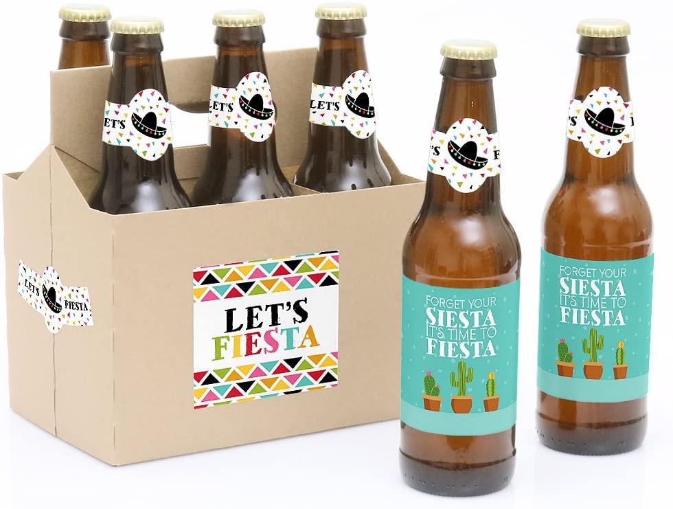 Let's Fiesta - Mexican Fiesta Party Decorations for Women and Men - 6 Beer Bottle Label Stickers and 1 Carrier is backordered and will ship as soon as it is back in stock.