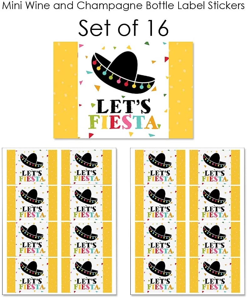 Let's Fiesta - Mini Wine and Champagne Bottle Label Stickers - Mexican Fiesta Favor Gift for Women and Men - Set of 16 is backordered and will ship as soon as it is back in stock.