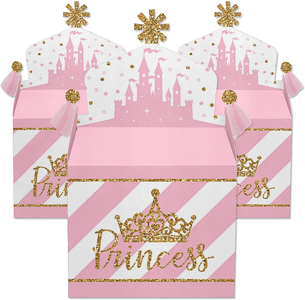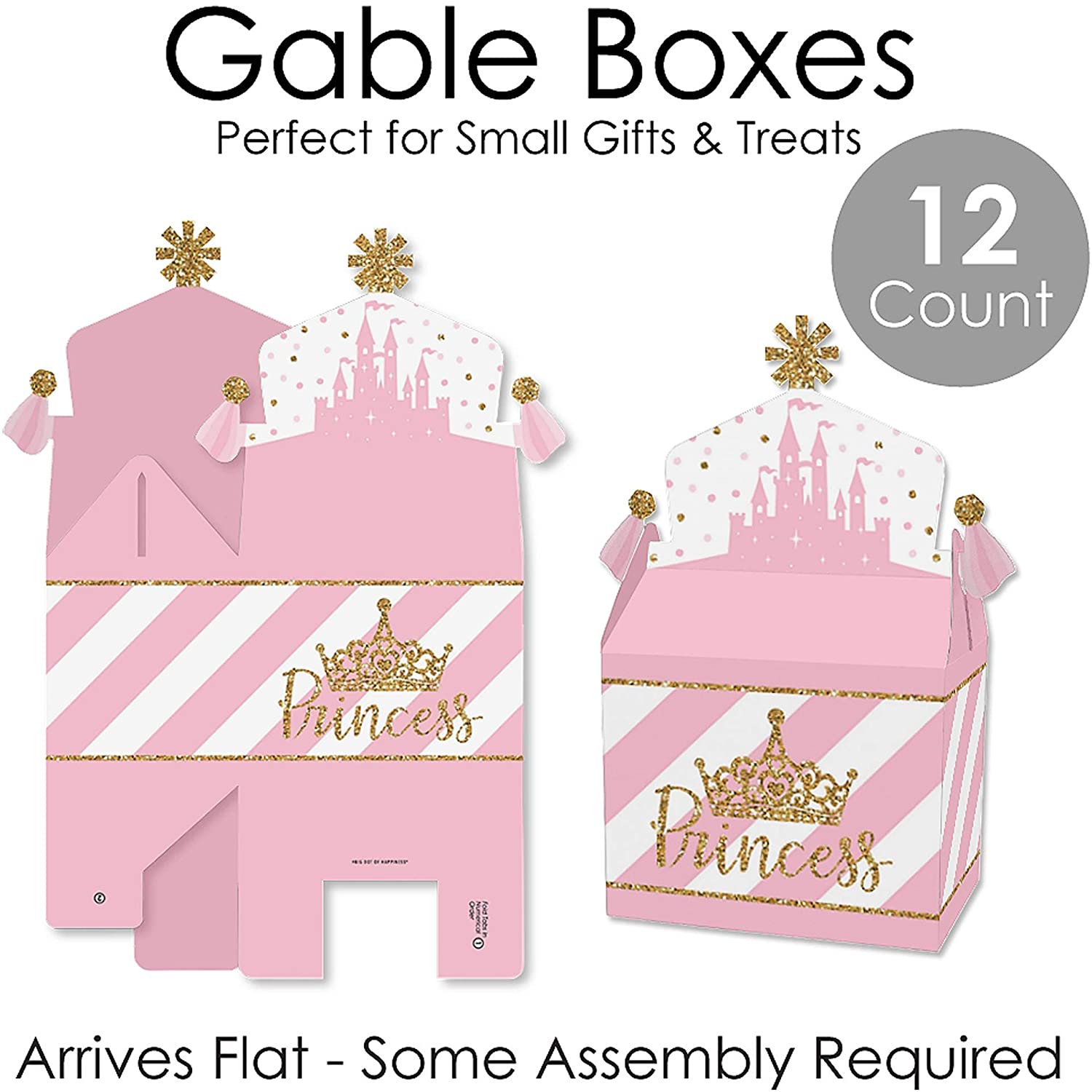 Little Princess Crown - Treat Box Party Favors - Pink and Gold Princess Baby Shower or Birthday Party Goodie Gable Boxes - Set of 12 is backordered and will ship as soon as it is back in stock.