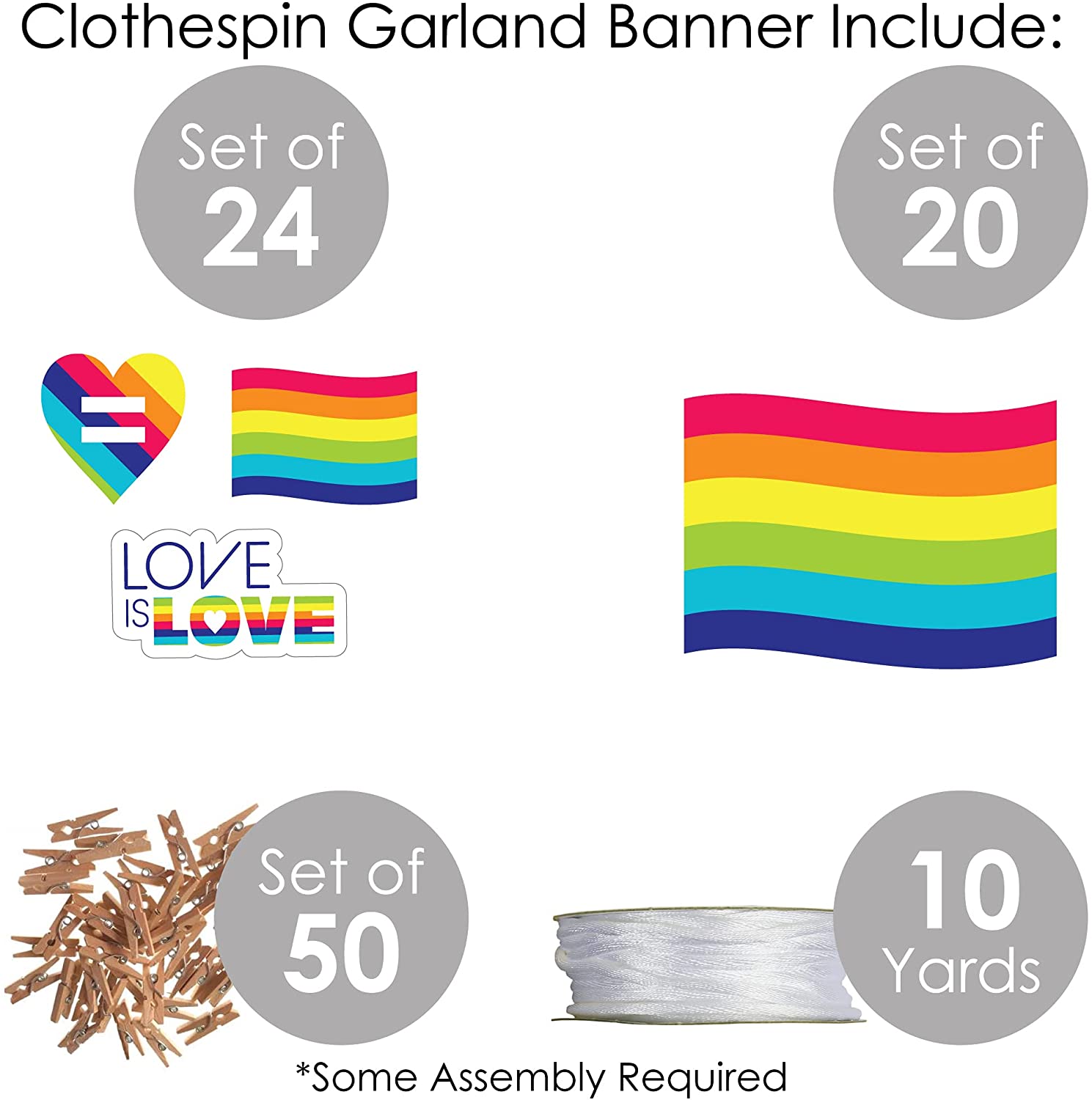 Love is Love - Gay Pride - LGBTQ Rainbow Party DIY Decorations - Clothespin Garland Banner - 44 Pieces is backordered and will ship as soon as it is back in stock.