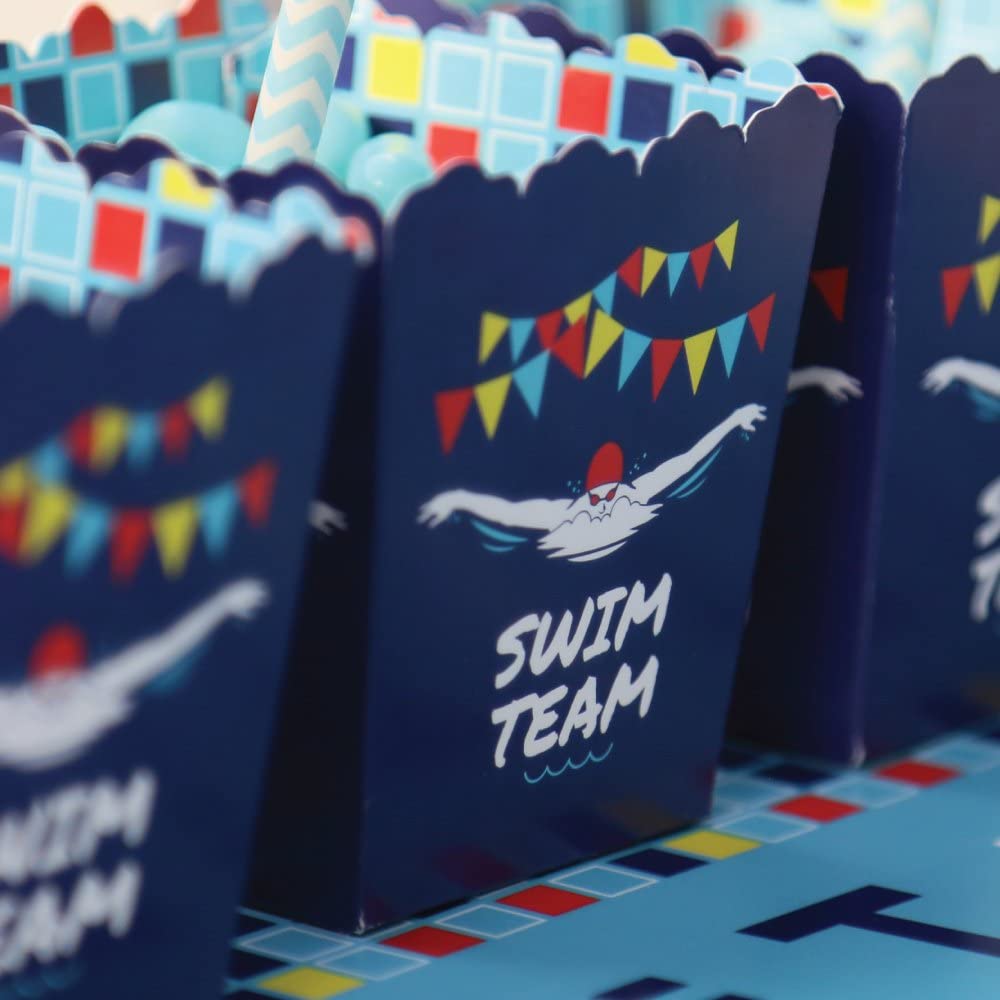 Making Waves - Swim Team - Party Mini Favor Boxes - Swimming Party or Birthday Party Treat Candy Boxes - Set of 12 is backordered and will ship as soon as it is back in stock.