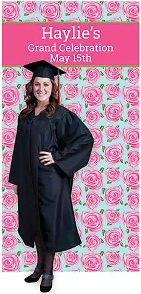 Our Modern Rose Personalized Photo Booth Background features beautiful pink rose design on a light blue background. All you need to do is add your custom wording to the Modern Rose Photo Background for a personal touch to your photos at your event. Photo Booth Backdrop features: