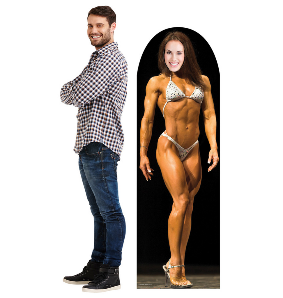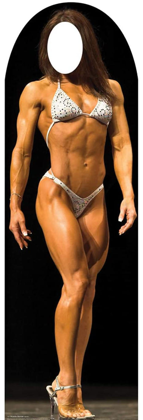 Muscle Woman Standin 63 x 20 (height x width) inches is backordered and will ship as soon as it is back in stock.