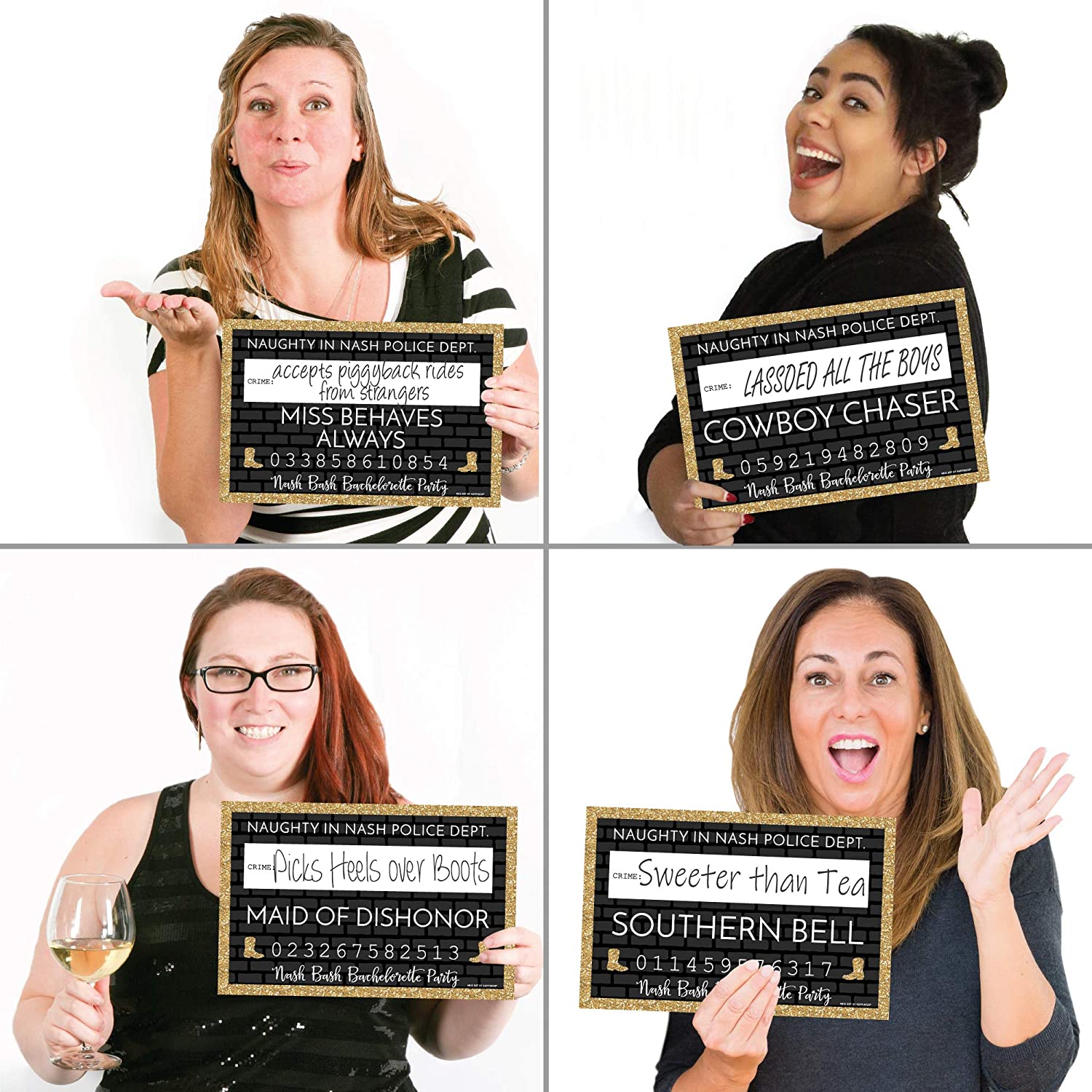 Nash Bash - Nashville Bachelorette Party Mug Shots - Photo Booth Props Mugshot Signs - 20 Count is backordered and will ship as soon as it is back in stock.