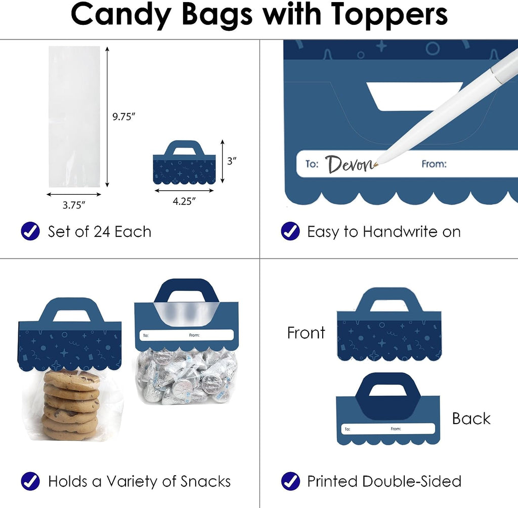 Navy Confetti Stars - DIY Simple Party Clear Goodie Favor Bag Labels - Candy Bags with Toppers - Set of 24 is backordered and will ship as soon as it is back in stock.