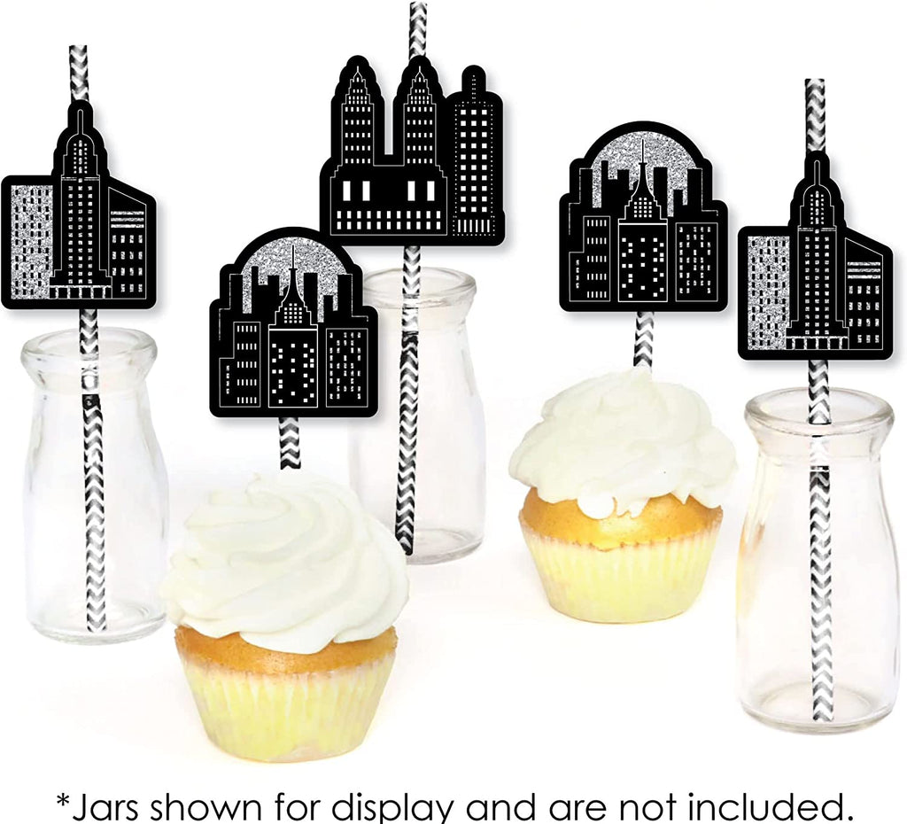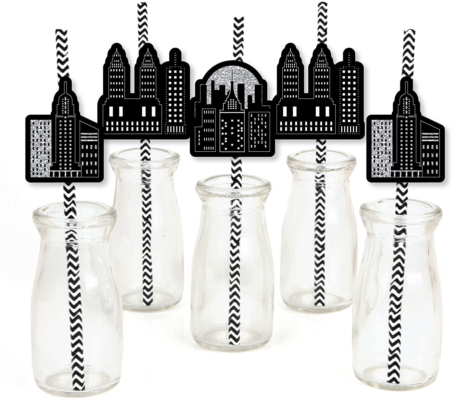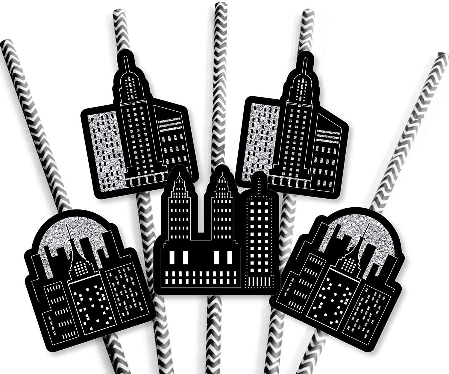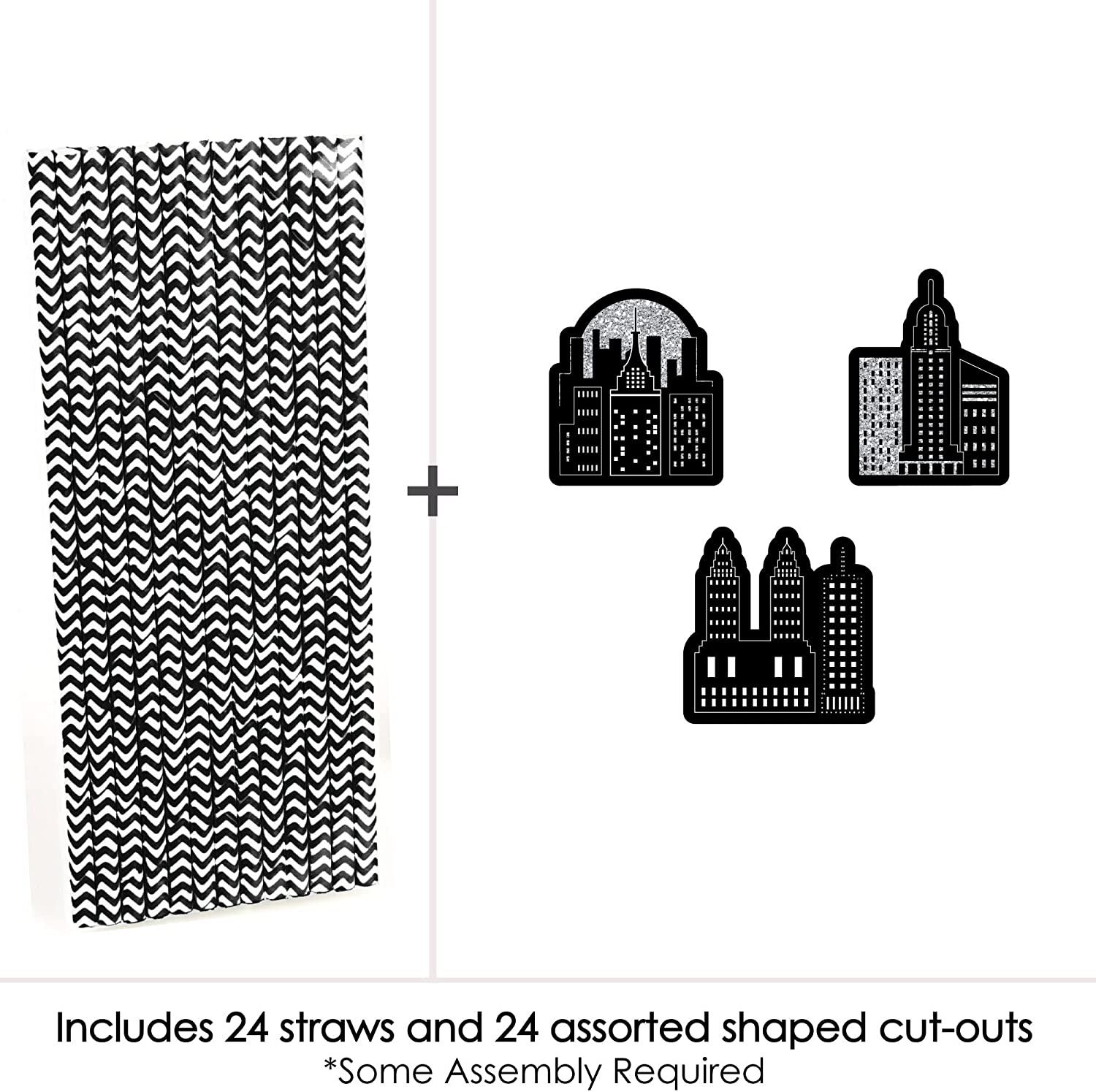 Nighttime City Skyline - Paper Straw Decor - New York Party Striped Decorative Straws - Set of 24 is backordered and will ship as soon as it is back in stock.