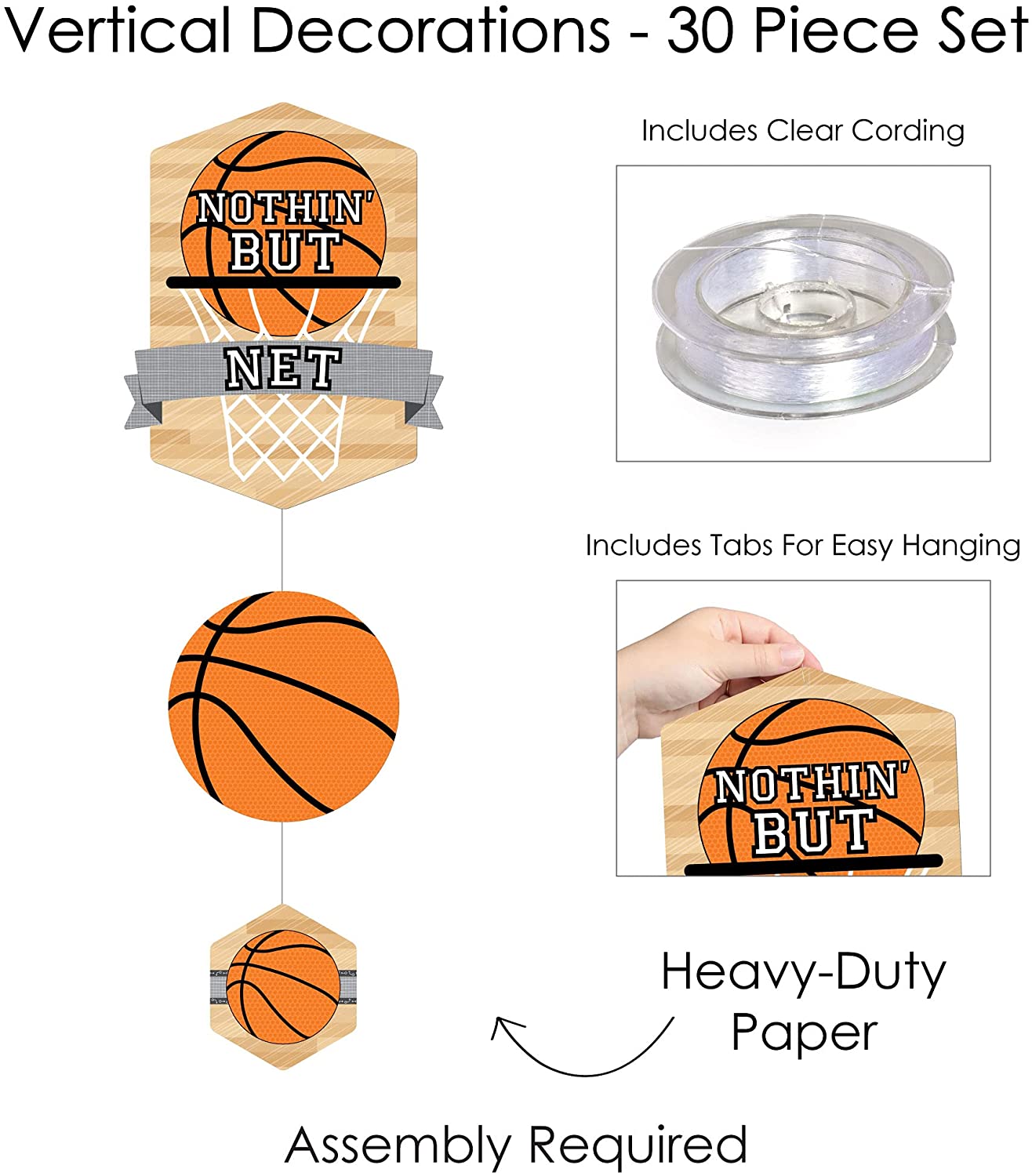 Nothin’ but Net - Basketball - Baby Shower or Birthday Party DIY Dangler Backdrop - Hanging Vertical Decorations - 30 Pieces is backordered and will ship as soon as it is back in stock.