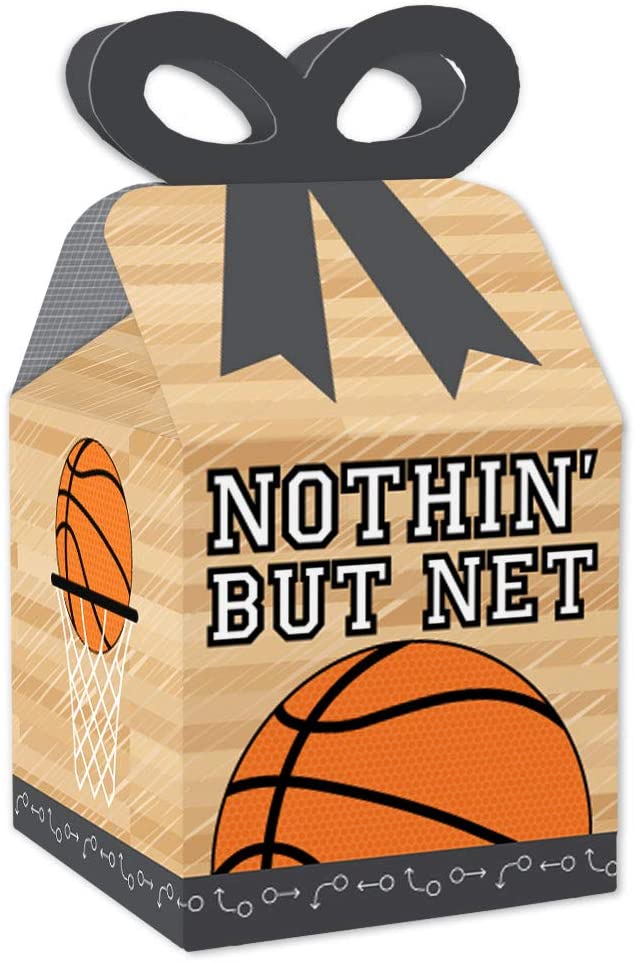 Nothin’ but Net - Basketball - Square Favor Gift Boxes - Baby Shower or Birthday Party Bow Boxes - Set of 12 is backordered and will ship as soon as it is back in stock.