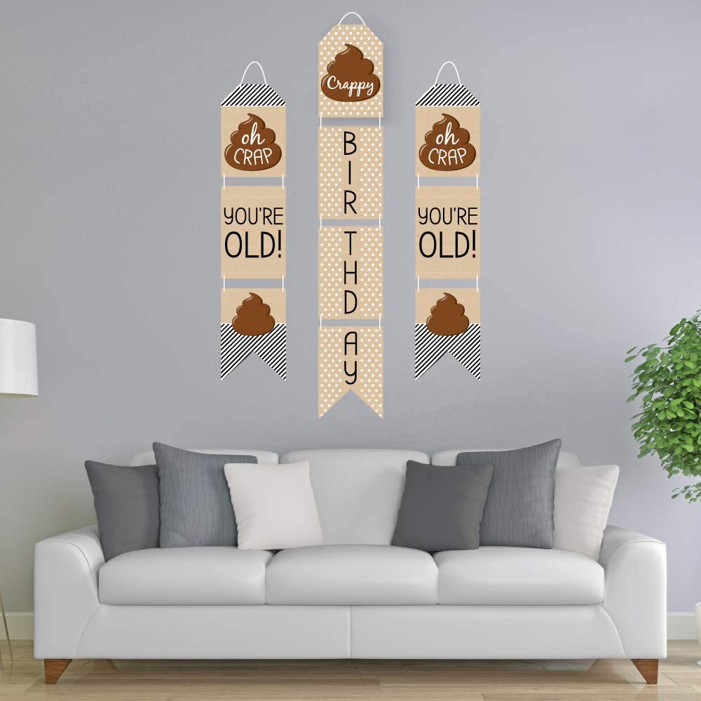 Oh Crap, You’re Old - Hanging Vertical Paper Door Banners - Poop Birthday Party Wall Decoration Kit - Indoor Door Decor is backordered and will ship as soon as it is back in stock.