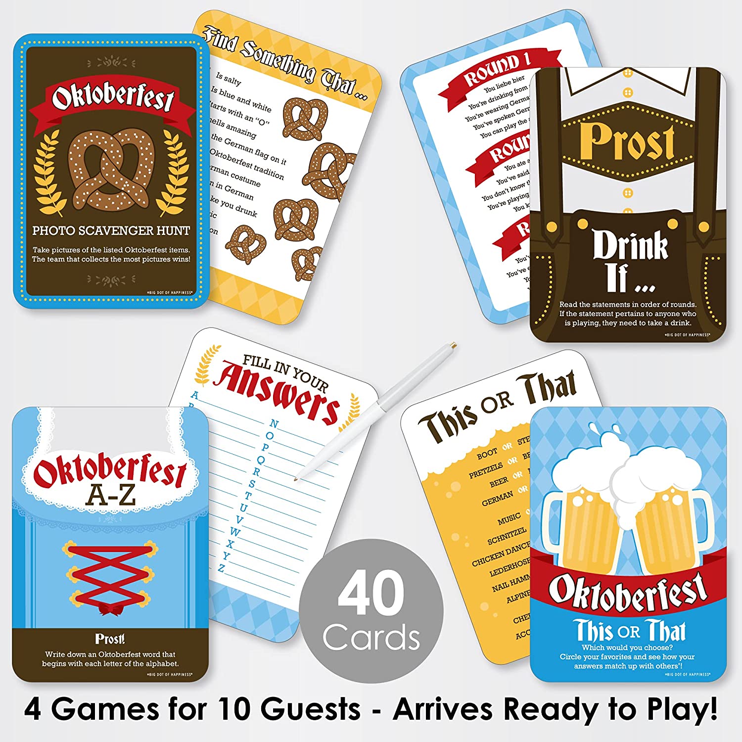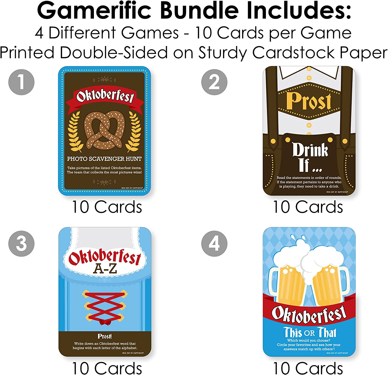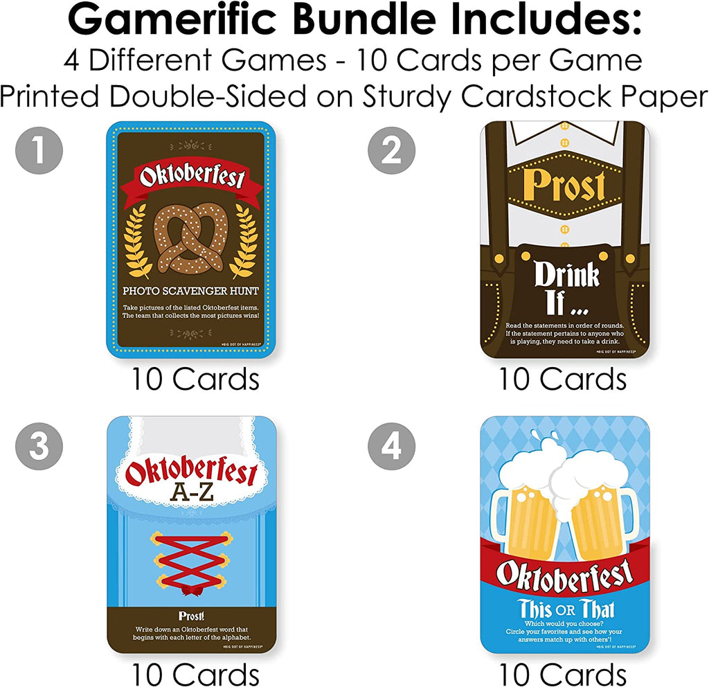 Oktoberfest - 4 German Beer Festival Games - 10 Cards Each - Gamerific Bundle is backordered and will ship as soon as it is back in stock.
