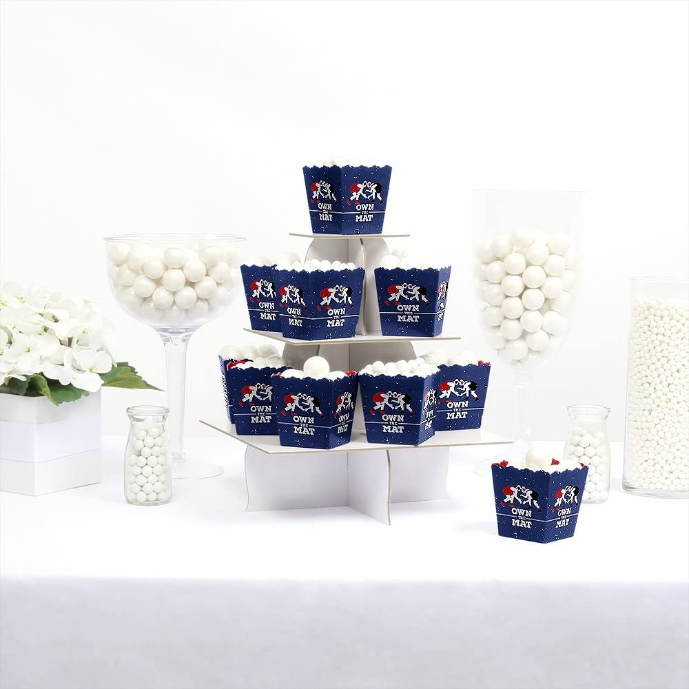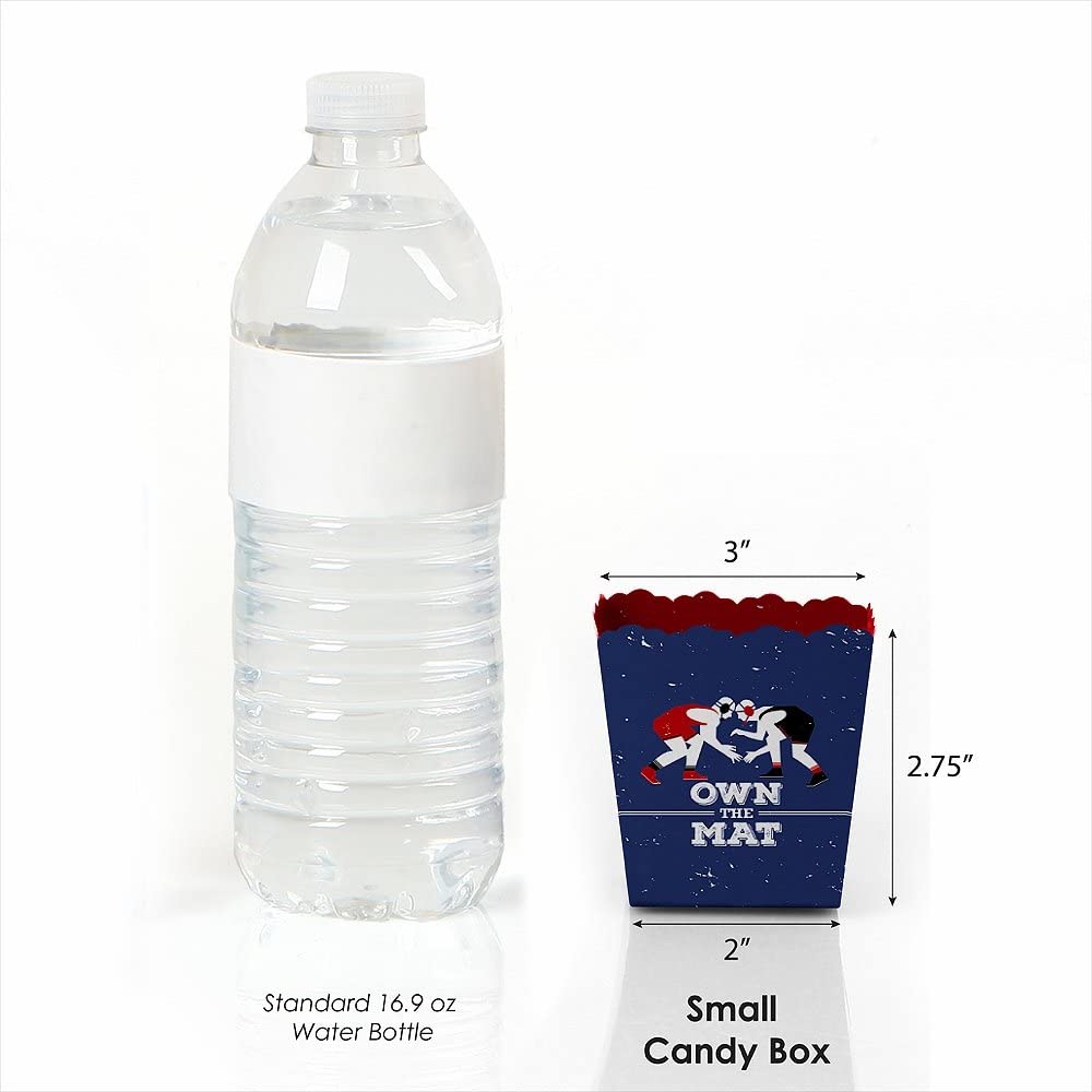 • Own The Mat - Wrestling party favor candy boxes SIZE 2.75 inches tall x 3 inches square at the top. The unique design makes these 12-little wrestler favor boxes a must-have for any birthday party.