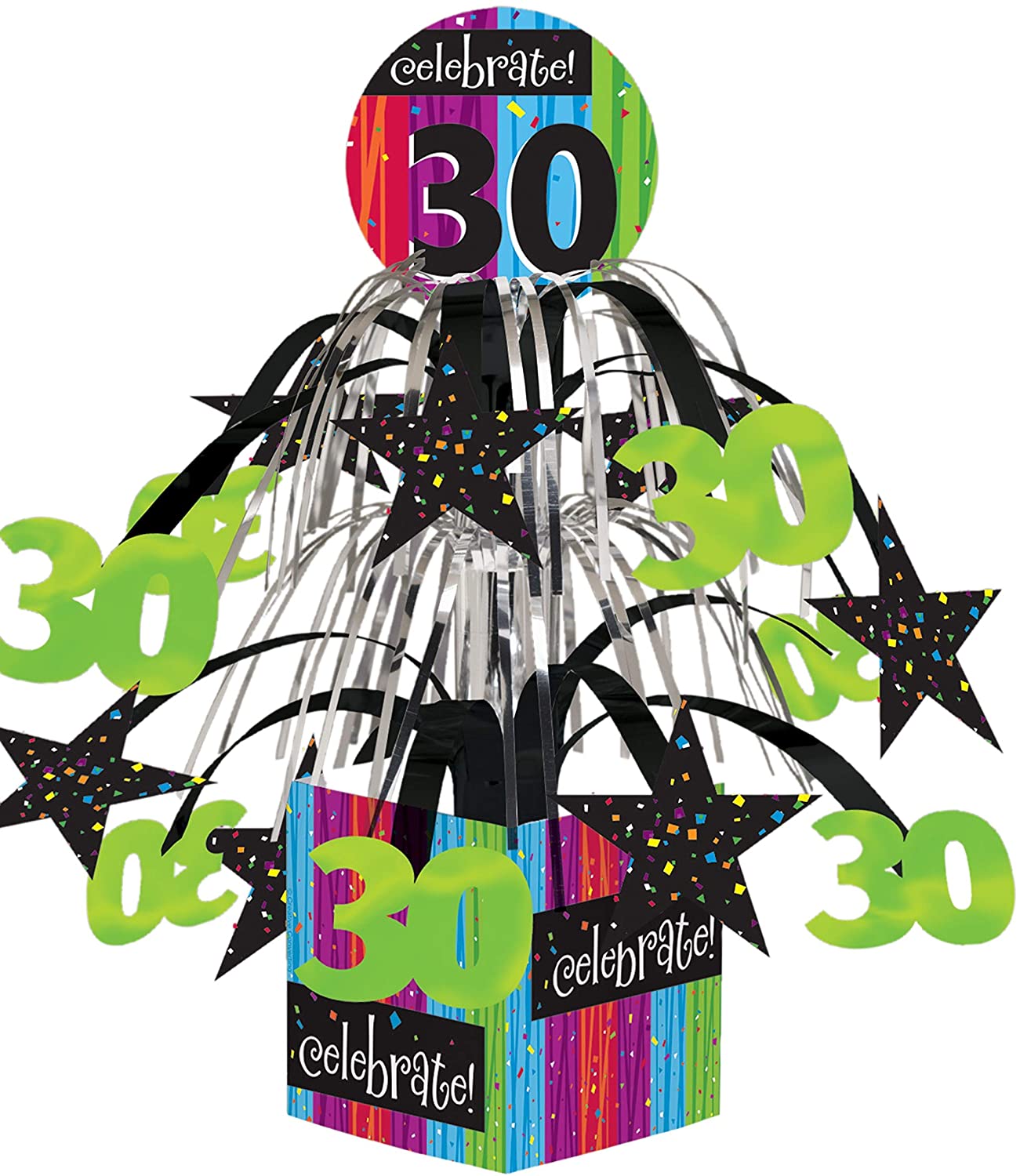 Party Decoration Metallic Foil Cascading Centerpiece, Milestone Celebrations 30th is backordered and will ship as soon as it is back in stock.