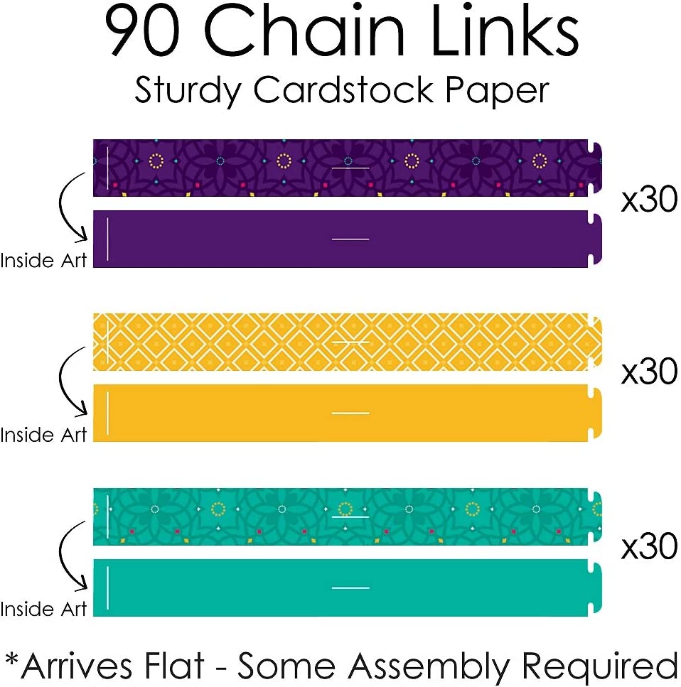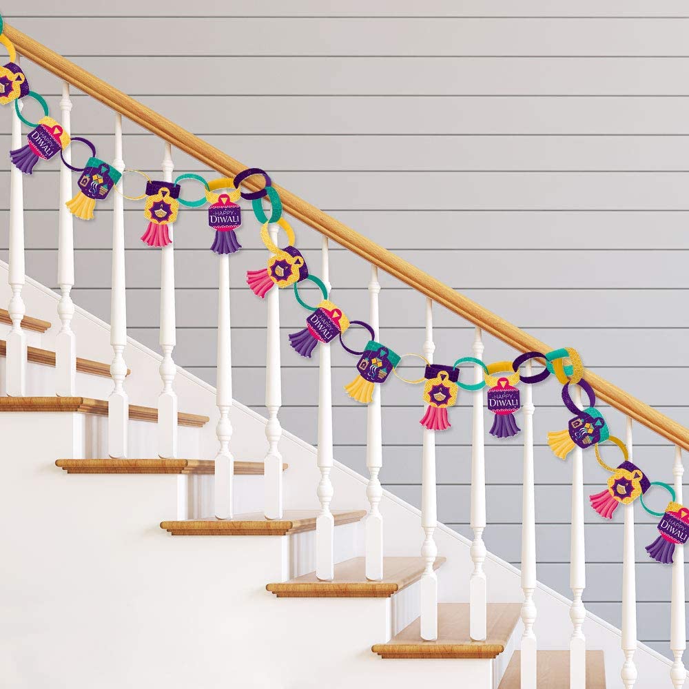 • PREMIUM PARTY DECORATION: Paper chain decorations are professionally printed and double-sided on sturdy cardstock paper, with a photo-like shine. They are then individually cut, inspected, and carefully packaged. Happy Diwali paper chains garland is a DIY kit that can be used in many ways. Get inspired with this fun do-it-yourself Festival of Lights party decor kit!
