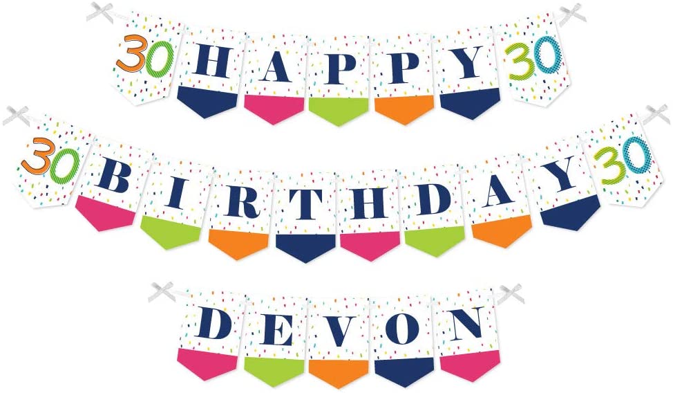 Personalized 30th Birthday - Cheerful Happy Birthday - Custom Colorful Thirtieth Birthday Party Bunting Banner & Decorations - Happy Birthday Custom Name Banner is backordered and will ship as soon as it is back in stock.