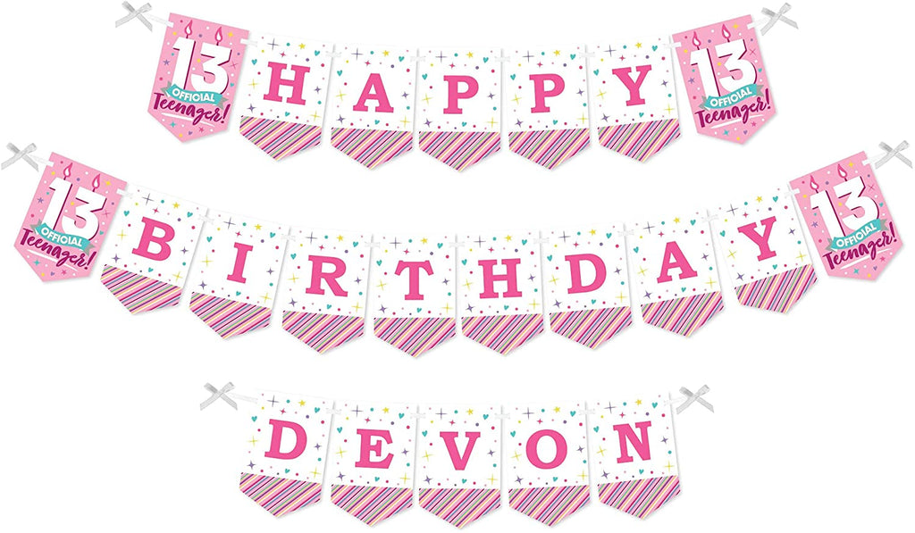 Personalized Girl 13th Birthday - Custom Official Teenager Birthday Party Bunting Banner and Decorations - Happy Birthday Custom Name Banner is backordered and will ship as soon as it is back in stock.