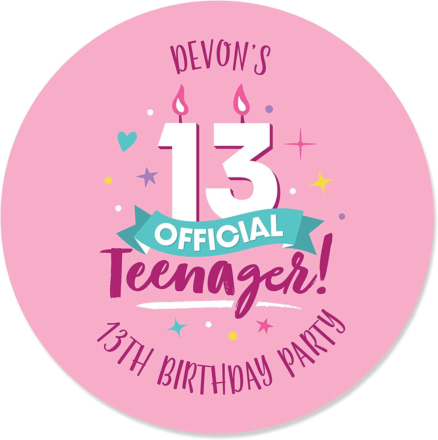 Personalized Girl 13th Birthday - Custom Official Teenager Birthday Party Favor Circle Sticker Labels - Custom Text - 24 Count