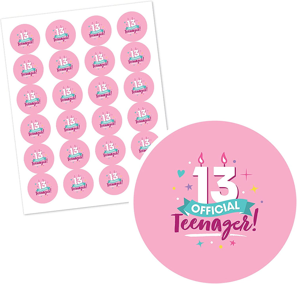 • Girl 13th Birthday Circle Sticker Labels INCLUDES 24 personalized round stickers – perfect for styling adorable birthday party favors, or for sealing invite and thank you envelopes.