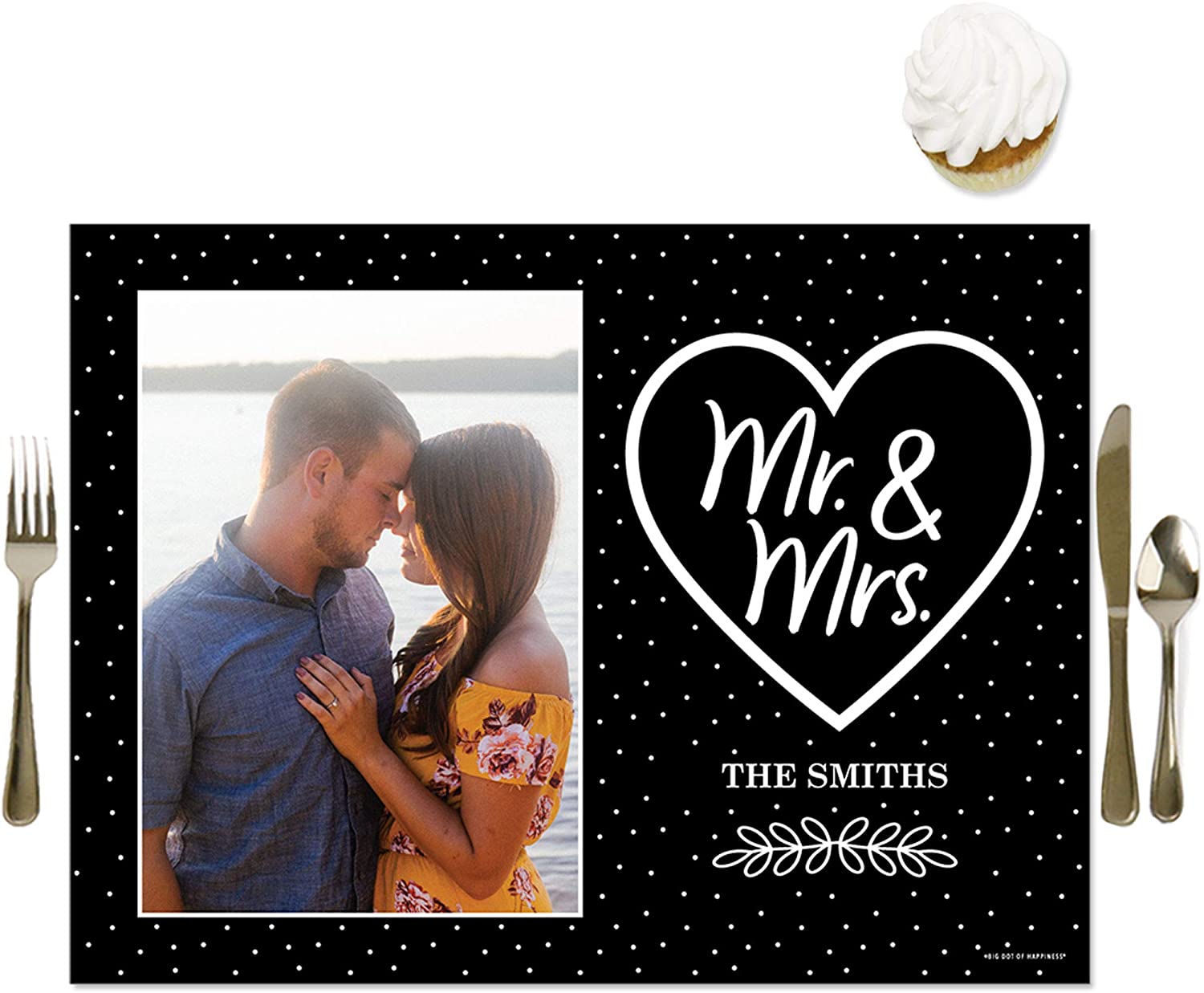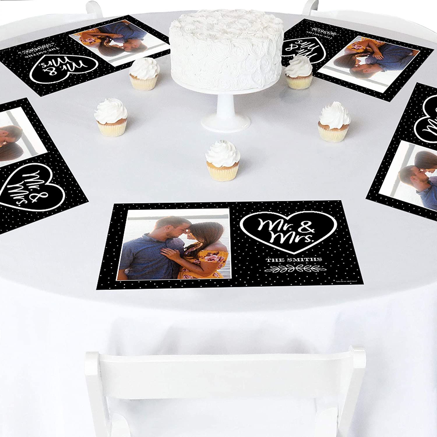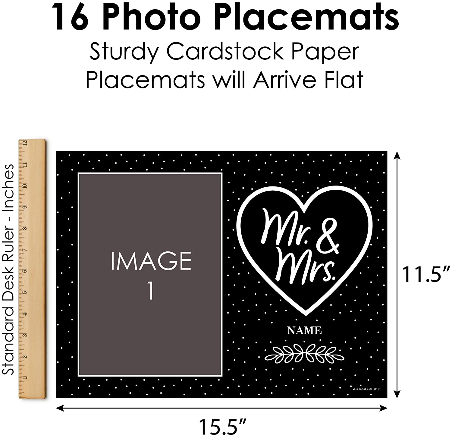 Personalized Mr. and Mrs. - Custom Black and White Wedding or Bridal Shower Party Table Decorations - Photo Placemats - Set of 16 is backordered and will ship as soon as it is back in stock.