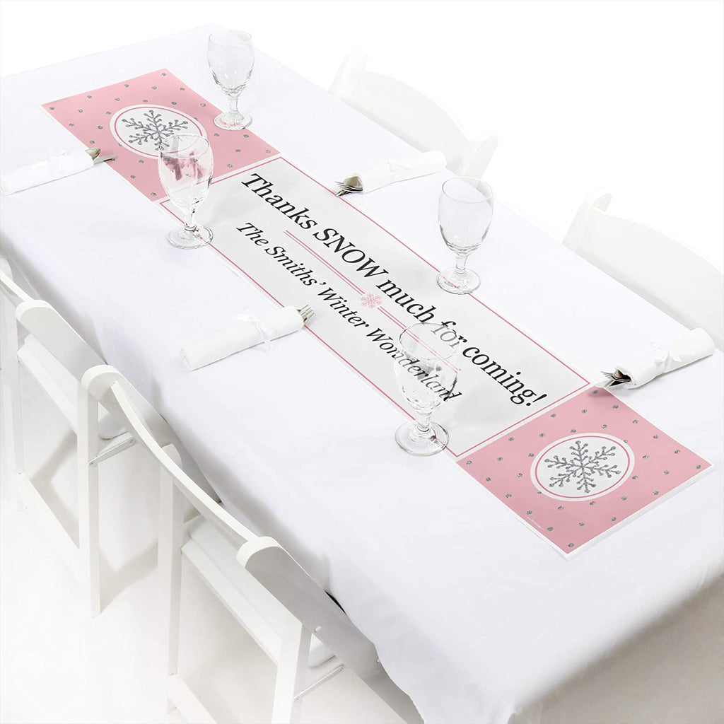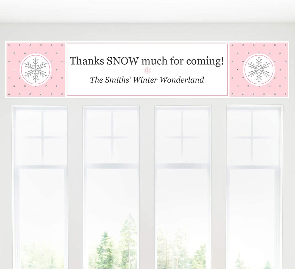 Personalized Pink Winter Wonderland - Custom Holiday Snowflake Birthday Party and Baby Shower Decorations Party Banner is backordered and will ship as soon as it is back in stock.