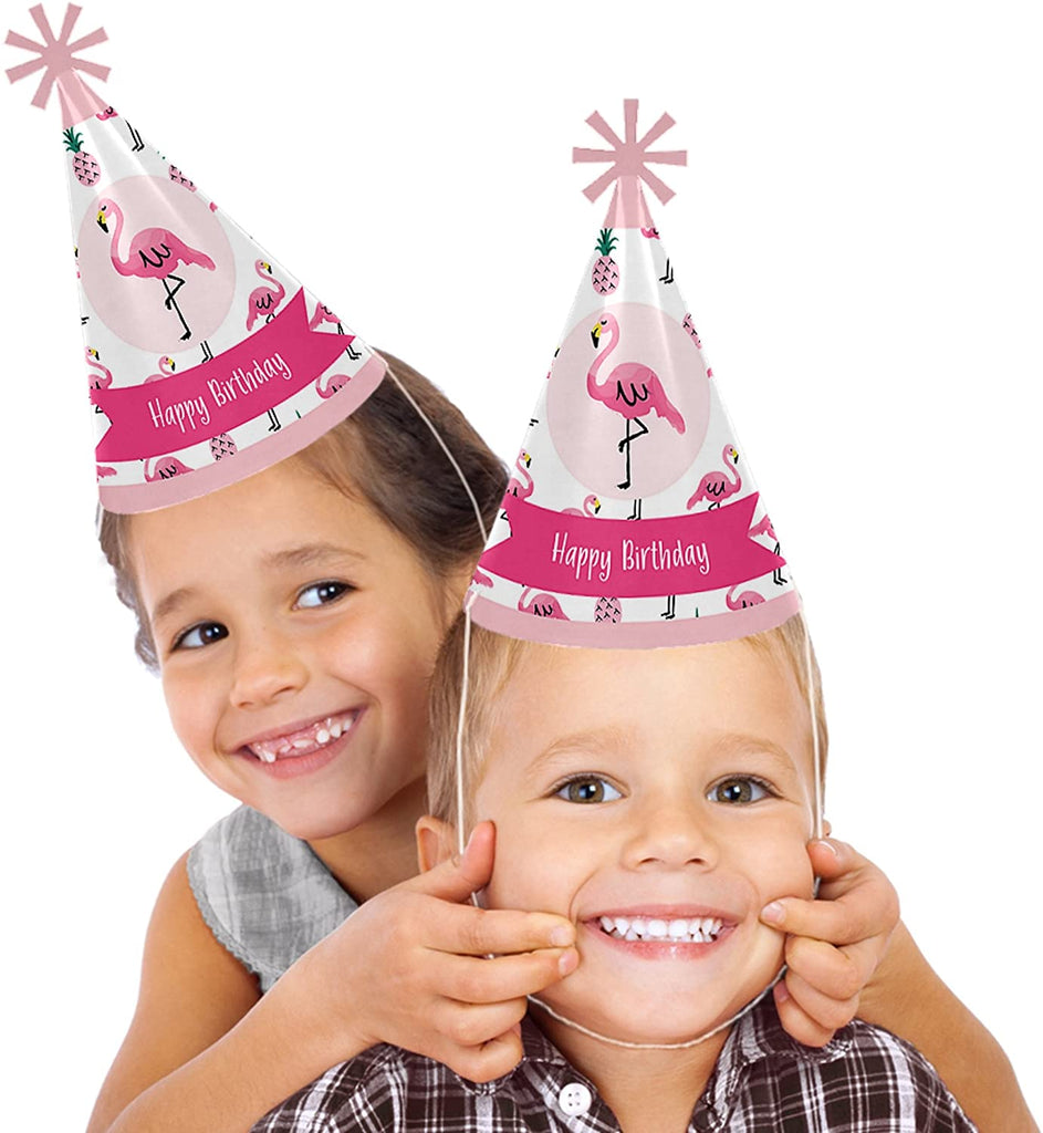 Pink Flamingo - Party Like a Pineapple - Tropical Summer Cone Happy Birthday Party Hats for Kids and Adults - Set of 8 is backordered and will ship as soon as it is back in stock.