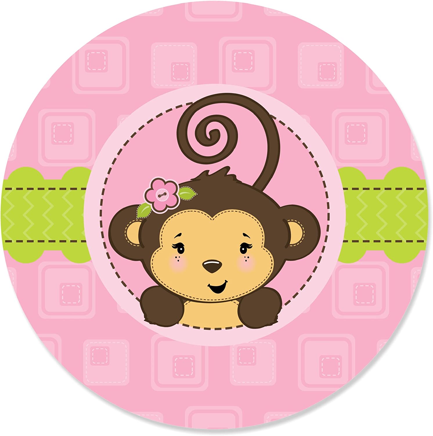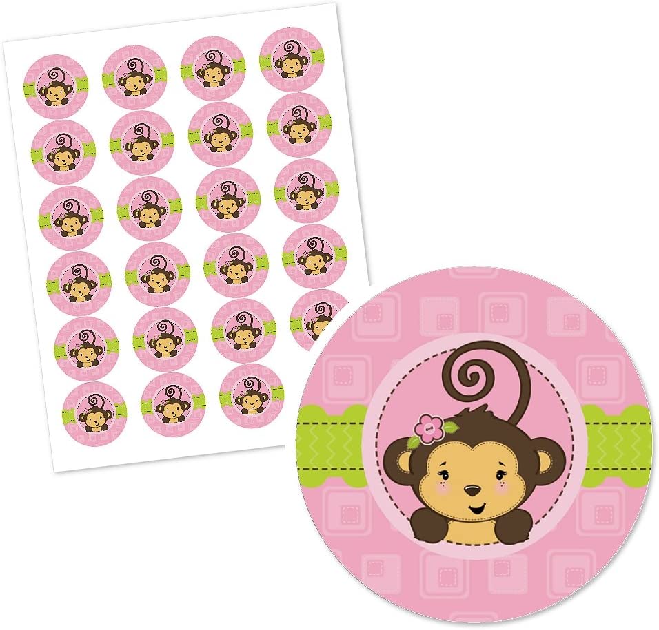 Pink Monkey Girl - Baby Shower or Birthday Party Circle Sticker Labels - 24 Count is backordered and will ship as soon as it is back in stock.