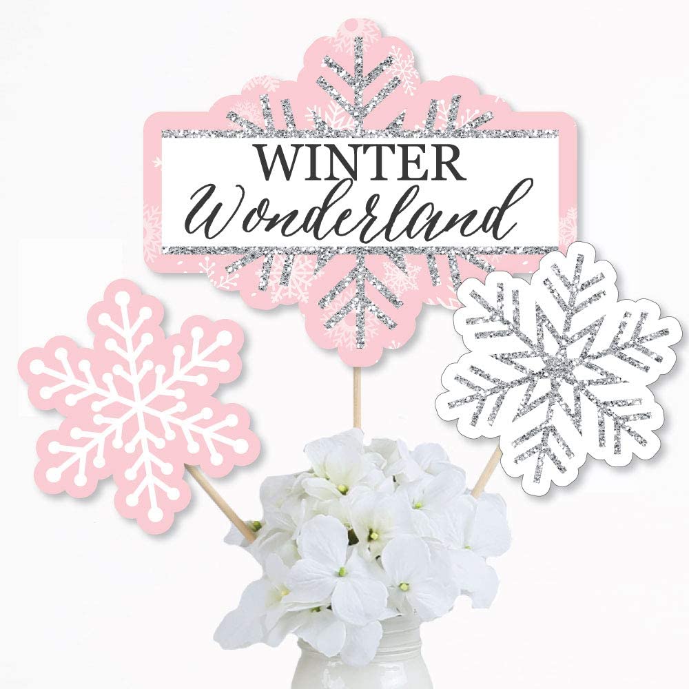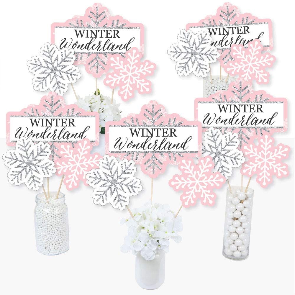 Pink Winter Wonderland - Holiday Snowflake Birthday Party or Baby Shower Centerpiece Sticks - Table Toppers - Set of 15 is backordered and will ship as soon as it is back in stock.