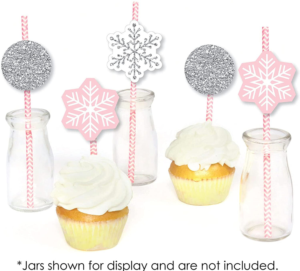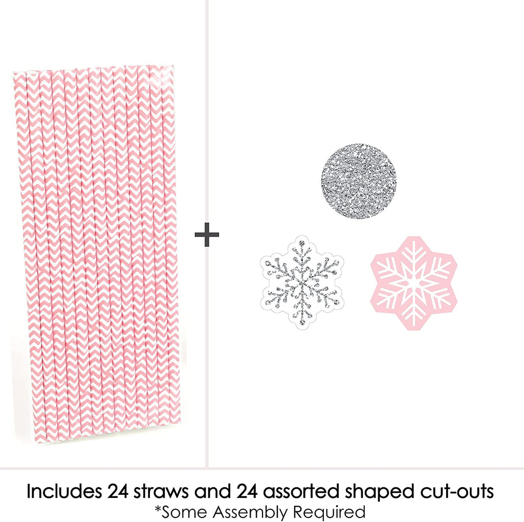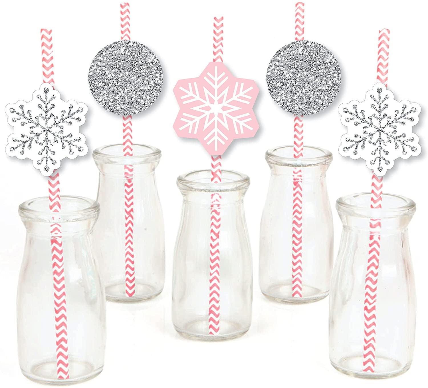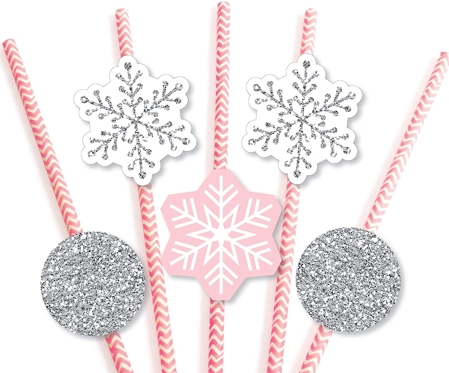 Pink Winter Wonderland - Paper Straw Decor - Holiday Snowflake Birthday Party or Baby Shower Striped Decorative Straws - Set of 24 is backordered and will ship as soon as it is back in stock.