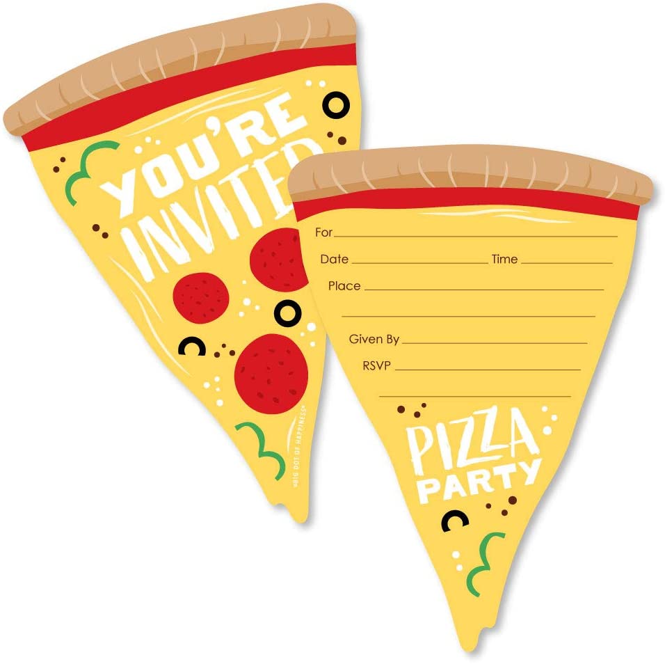 Pizza Party Time - Shaped Fill-In Invitations - Baby Shower or Birthday Party Invitation Cards with Envelopes - Set of 12 is backordered and will ship as soon as it is back in stock.