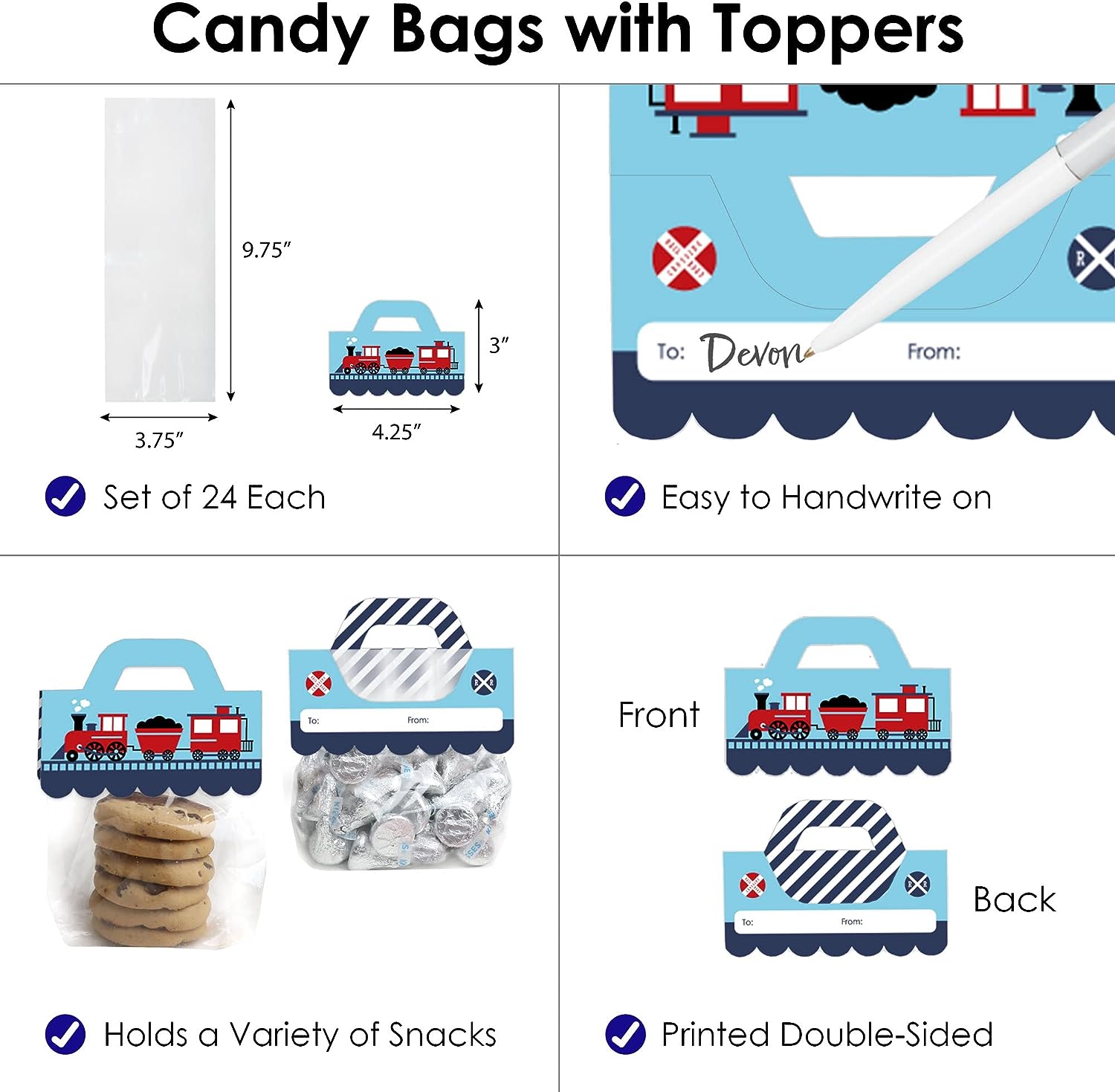 Railroad Party Crossing - DIY Steam Train Birthday Party or Baby Shower Clear Goodie Favor Bag Labels - Candy Bags with Toppers - Set of 24 is backordered and will ship as soon as it is back in stock.