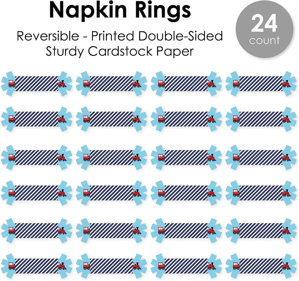 Railroad Party Crossing - Steam Train Birthday Party or Baby Shower Paper Napkin Holder - Napkin Rings - Set of 24 is backordered and will ship as soon as it is back in stock.