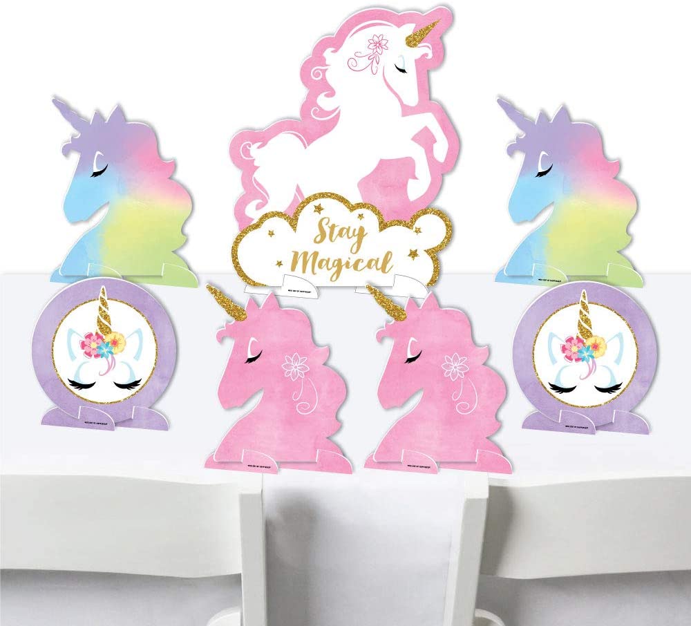 Rainbow Unicorn - Magical Unicorn Baby Shower or Birthday Party Centerpiece Table Decorations - Tabletop Standups - 7 Pieces is backordered and will ship as soon as it is back in stock.