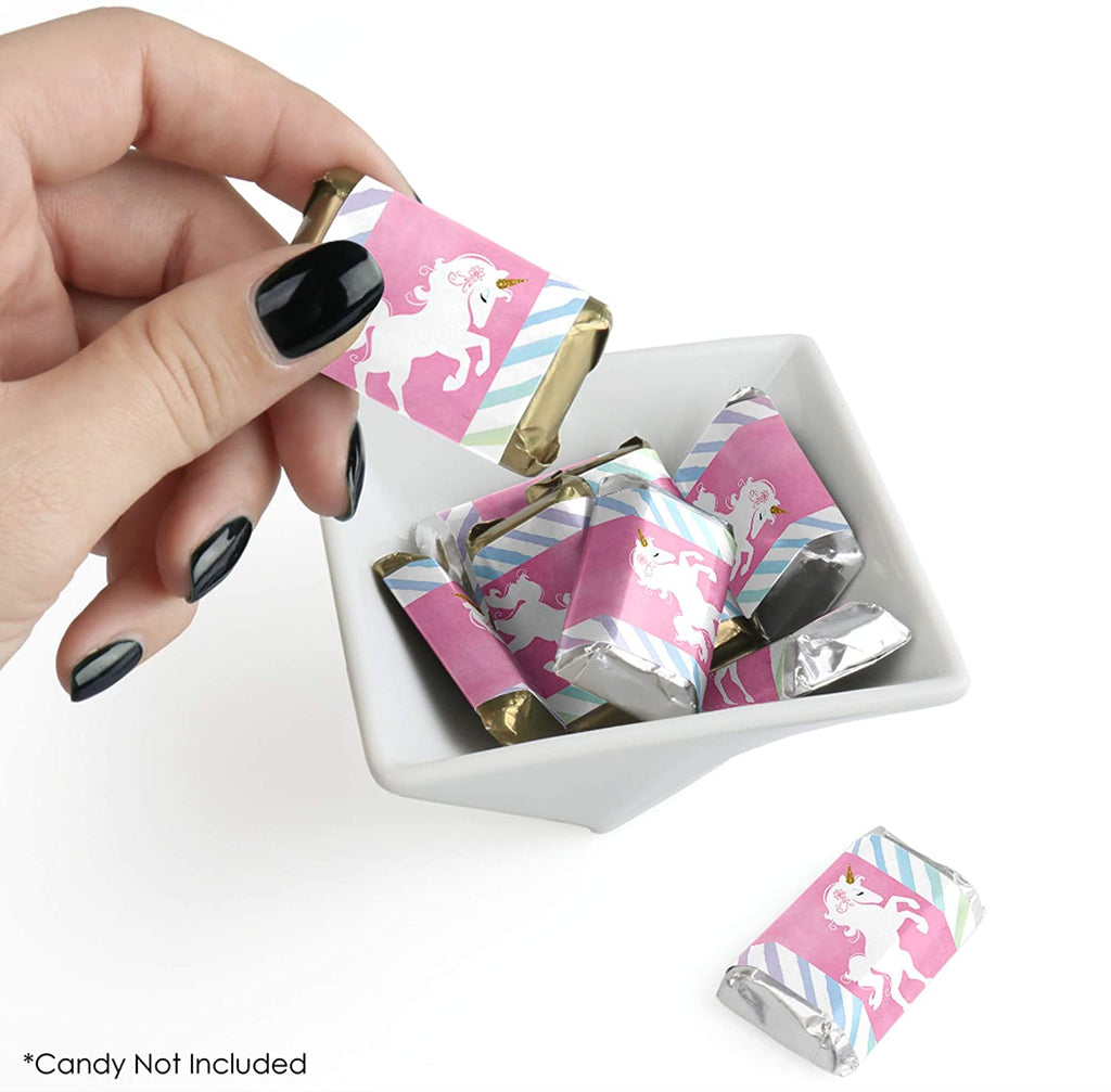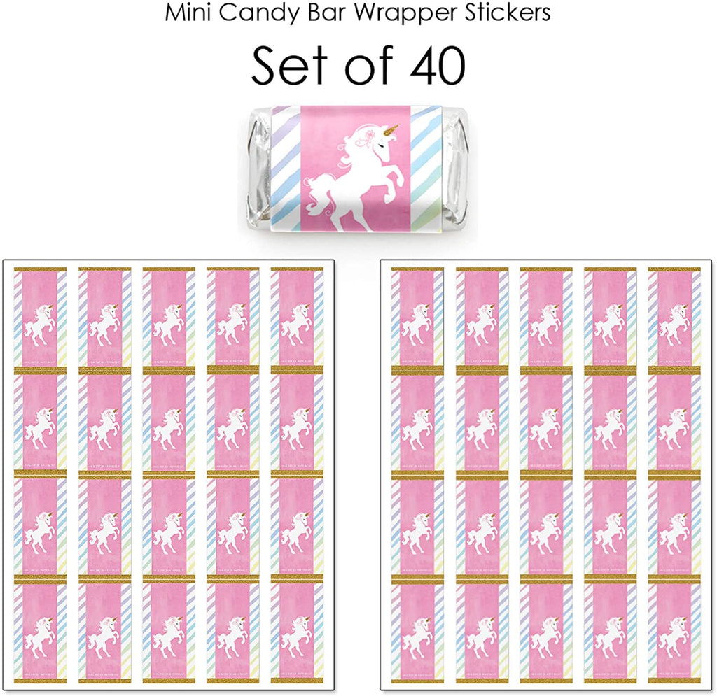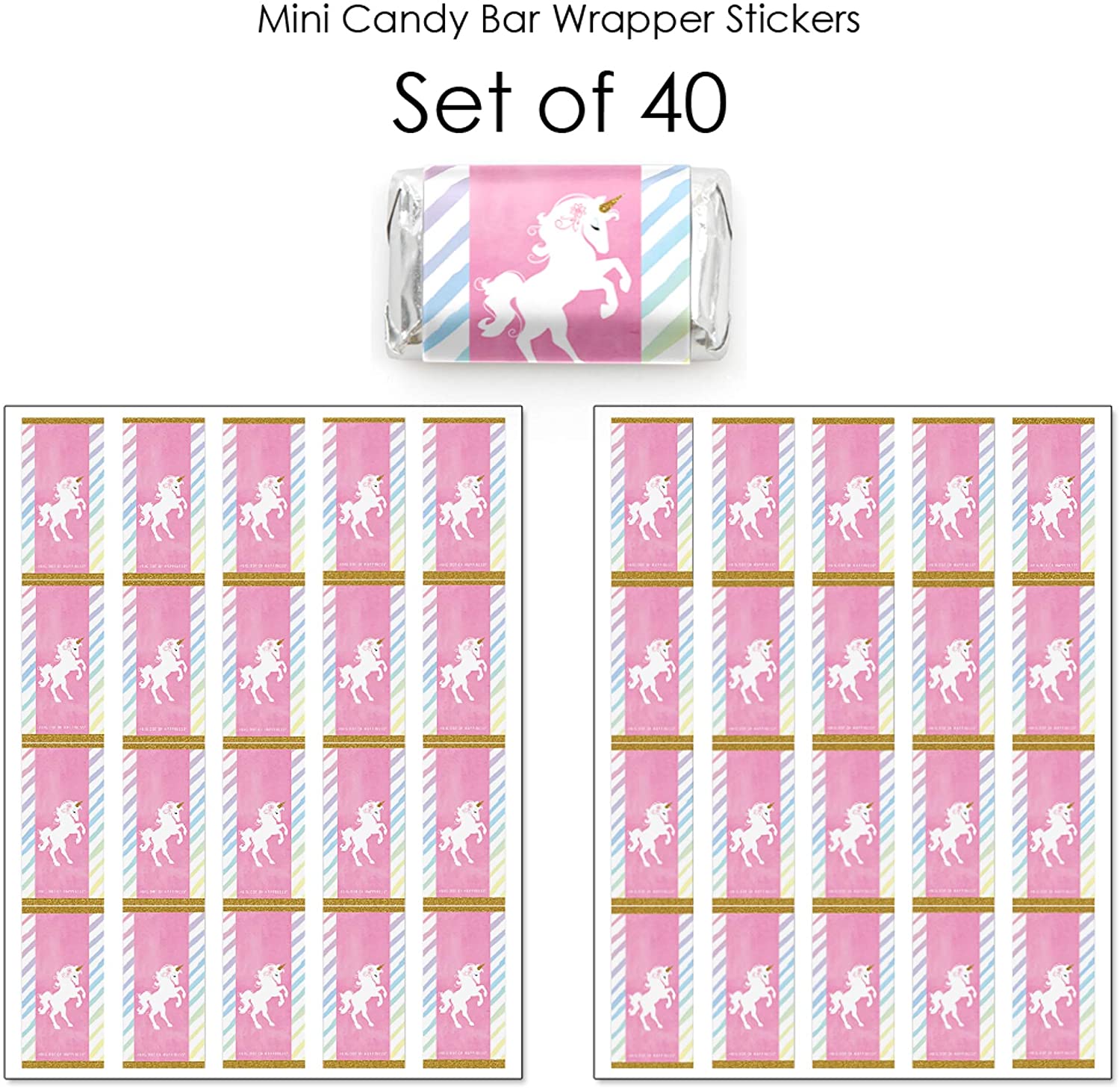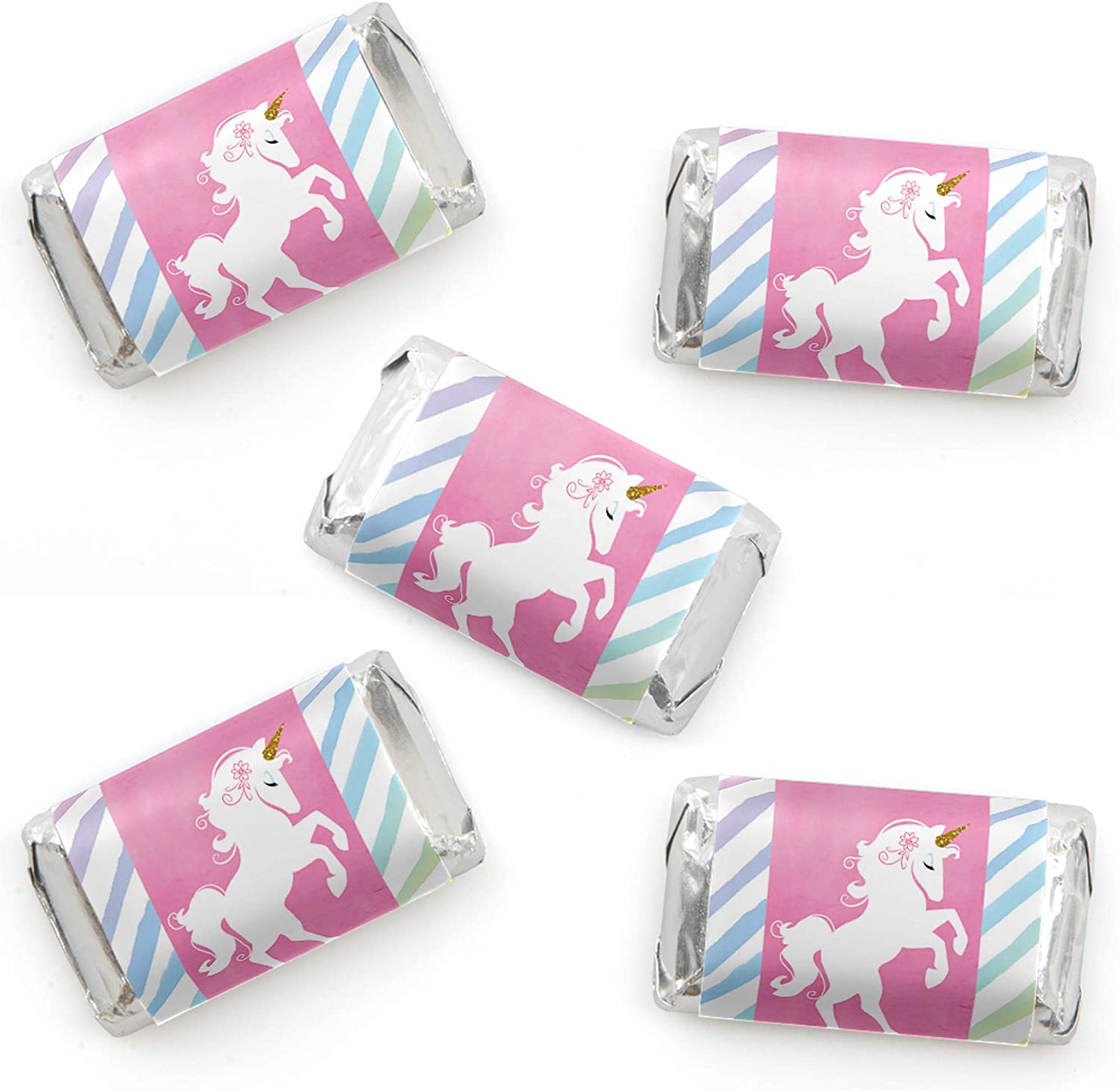 Rainbow Unicorn - Mini Candy Bar Wrapper Stickers - Magical Unicorn Baby Shower or Birthday Party Small Favors - 40 Count is backordered and will ship as soon as it is back in stock.
