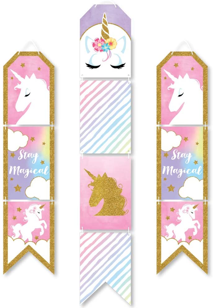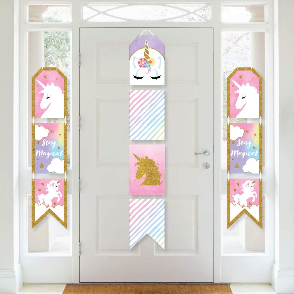 Rainbow Unicorn - Hanging Vertical Paper Door Banners - Magical Unicorn Baby Shower or Birthday Party Wall Decoration Kit - Indoor Door Decor is backordered and will ship as soon as it is back in stock.