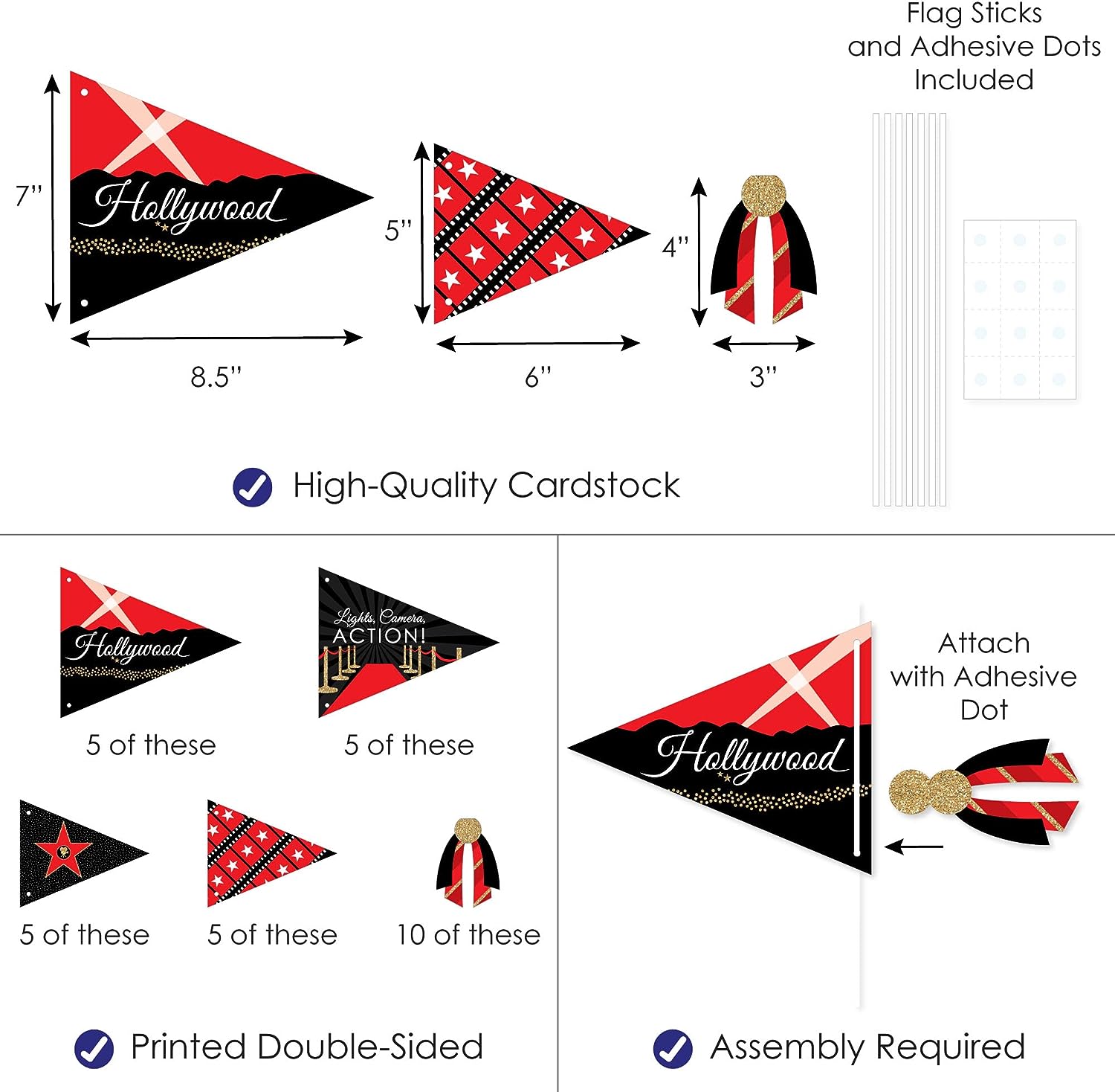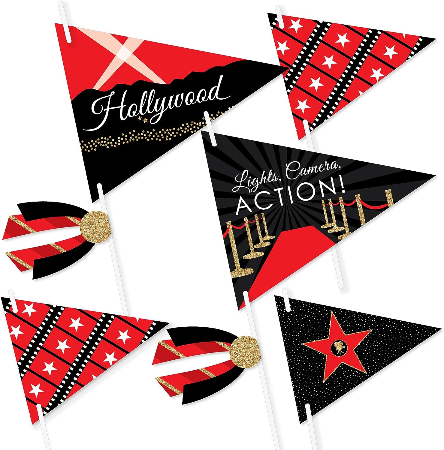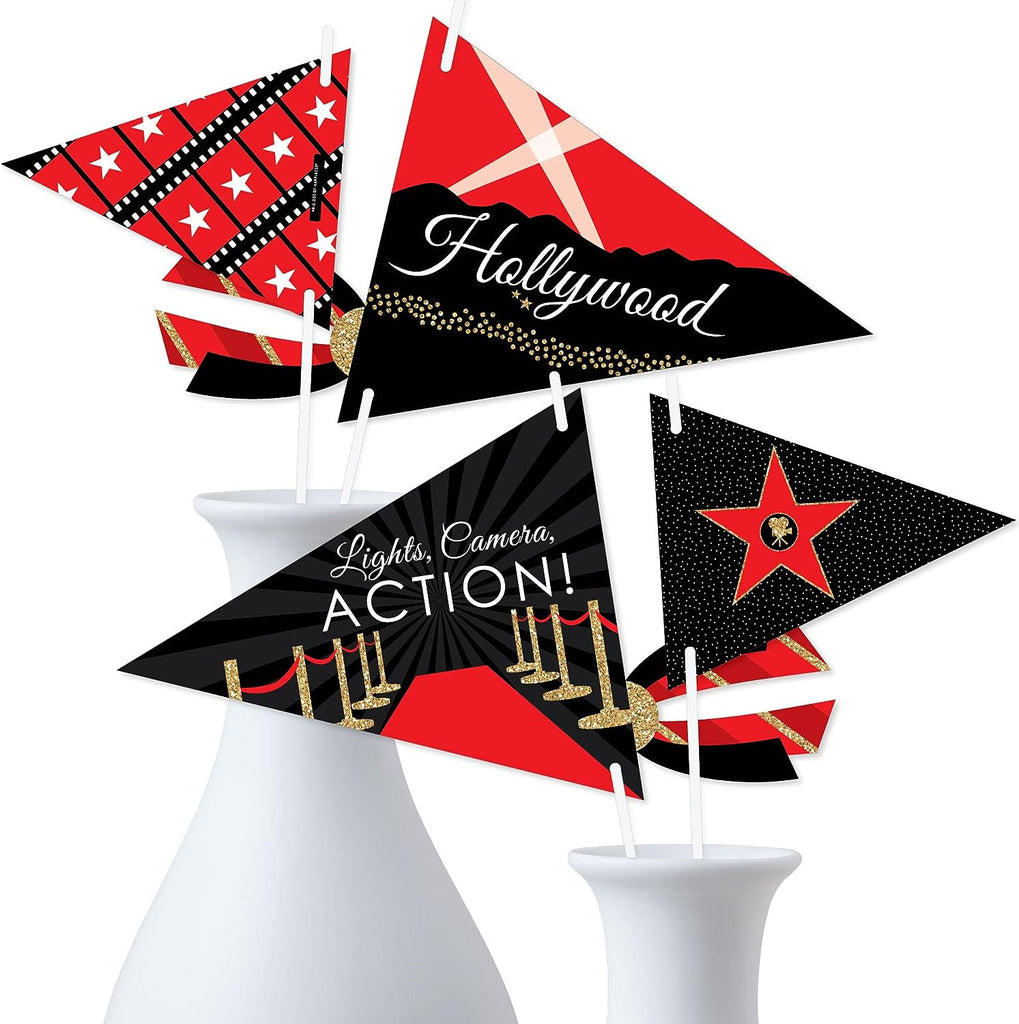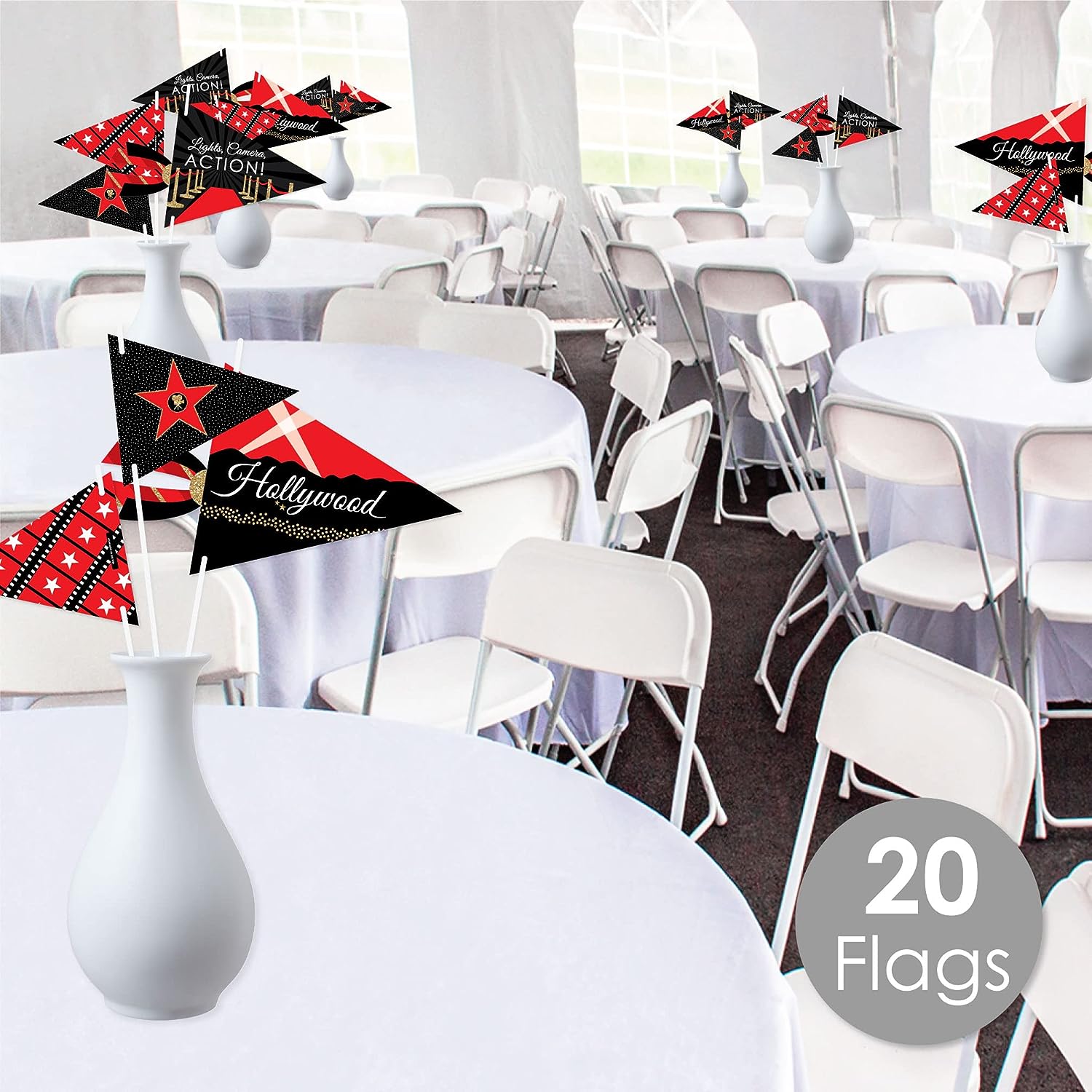 Red Carpet Hollywood - Triangle Movie Night Party Photo Props - Pennant Flag Centerpieces - Set of 20 is backordered and will ship as soon as it is back in stock.