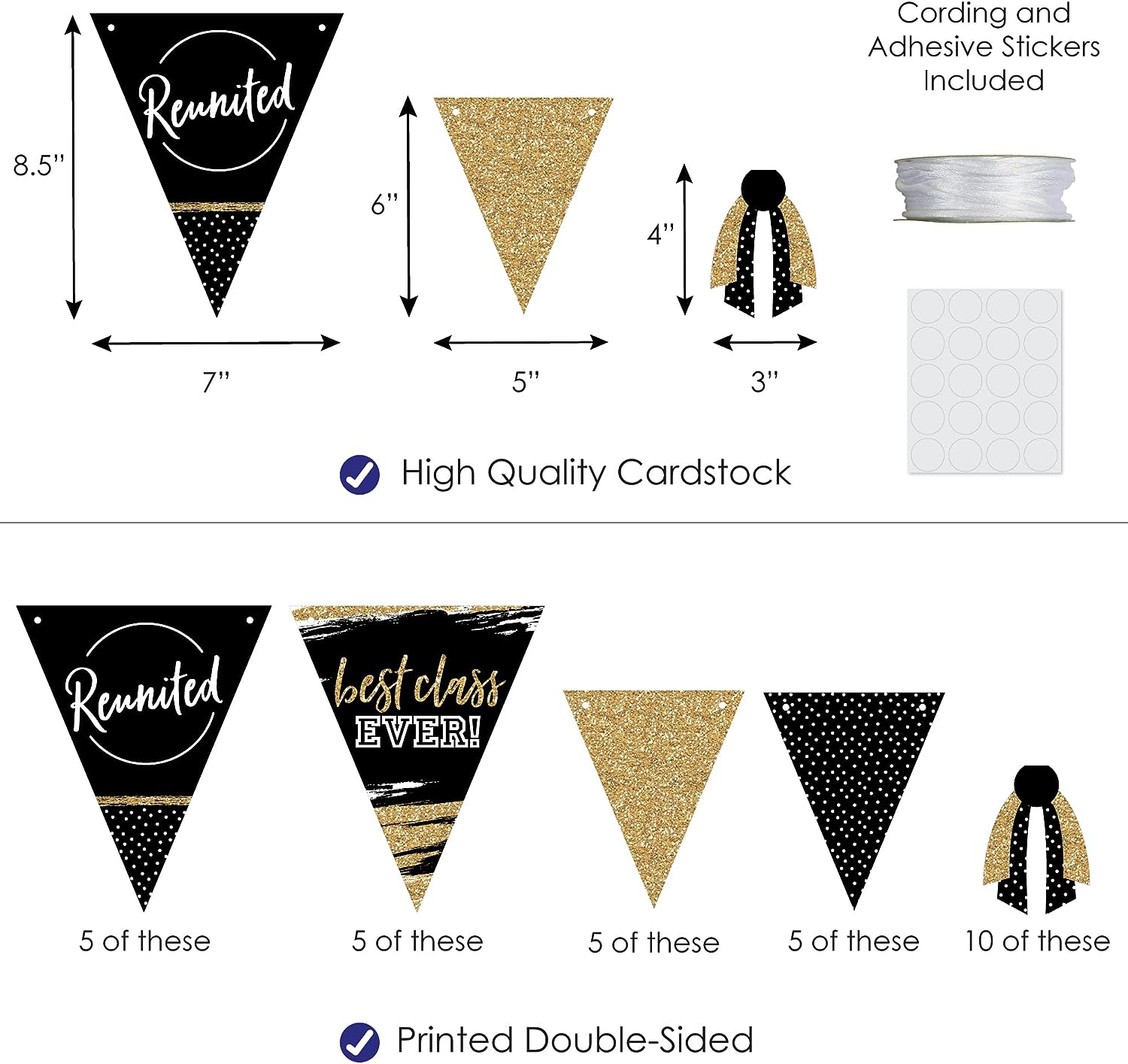 Reunited - DIY School Class Reunion Party Pennant Garland Decoration - Triangle Banner - 30 Pieces is backordered and will ship as soon as it is back in stock.