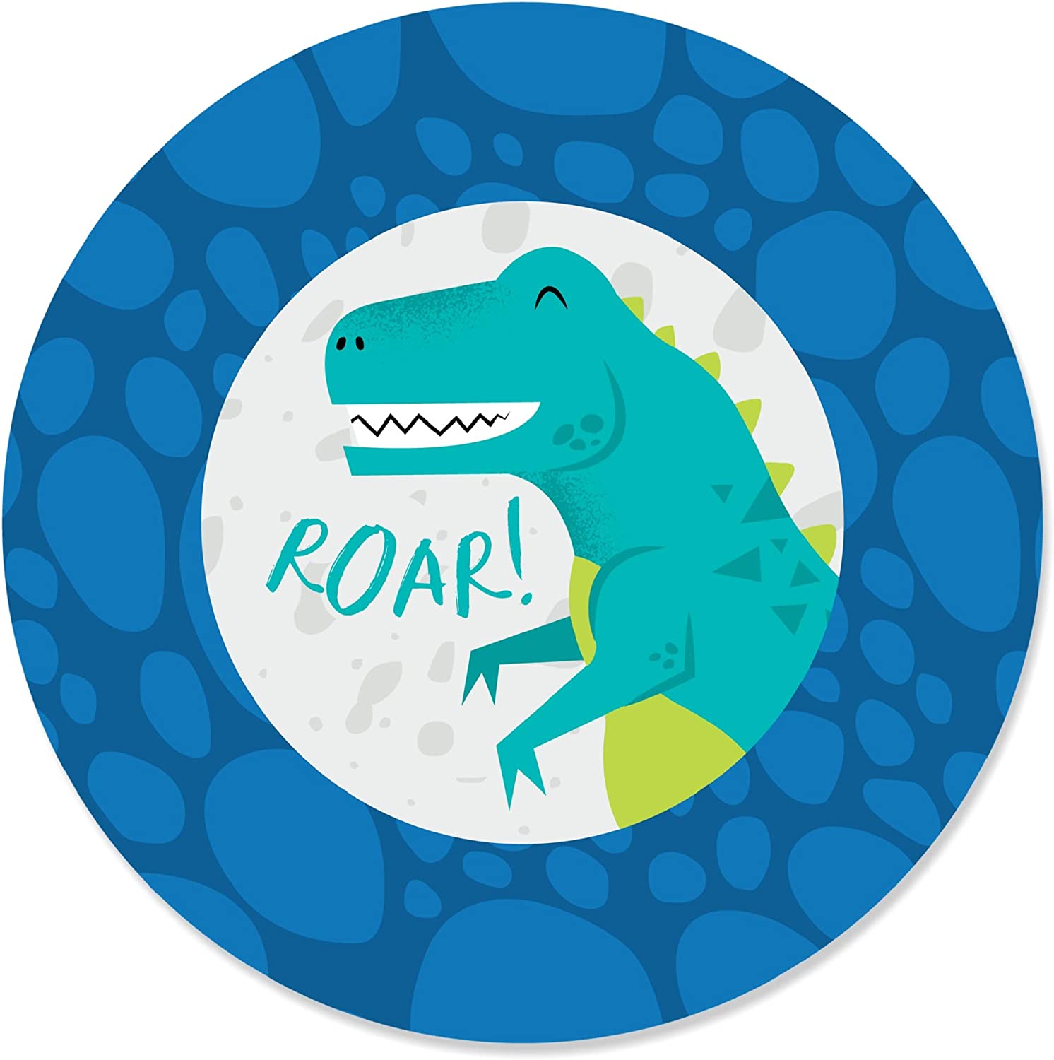 Roar Dinosaur - Dino Mite T-Rex Baby Shower or Birthday Party Circle Sticker Labels - 24 Count is backordered and will ship as soon as it is back in stock.