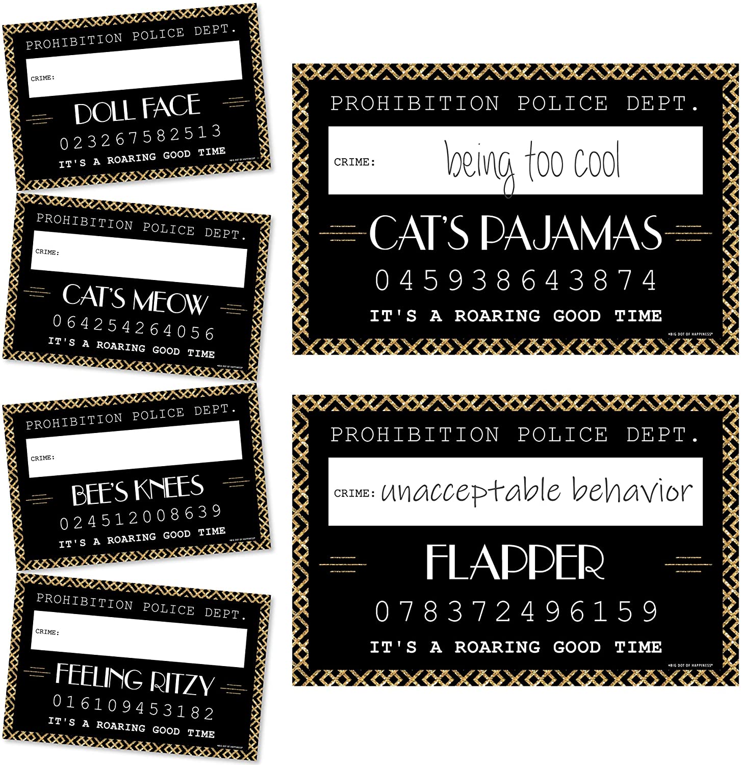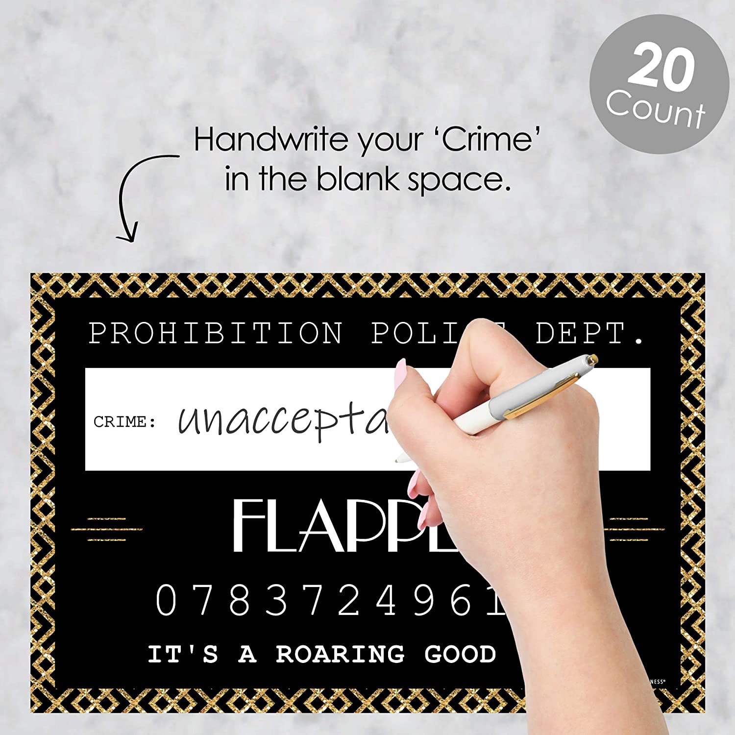 Roaring 20's - Party Mug Shots - Photo Booth Props 1920s Art Deco Jazz Party Mugshot Signs - 20 Count is backordered and will ship as soon as it is back in stock.