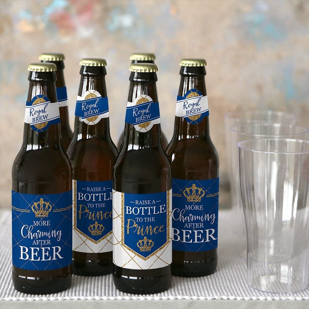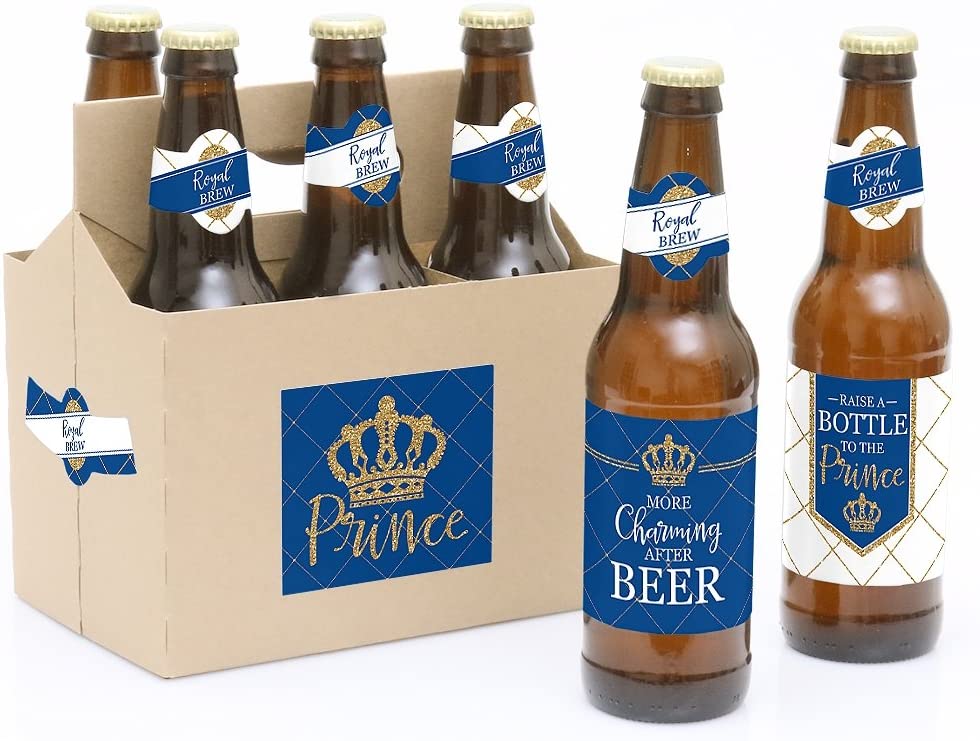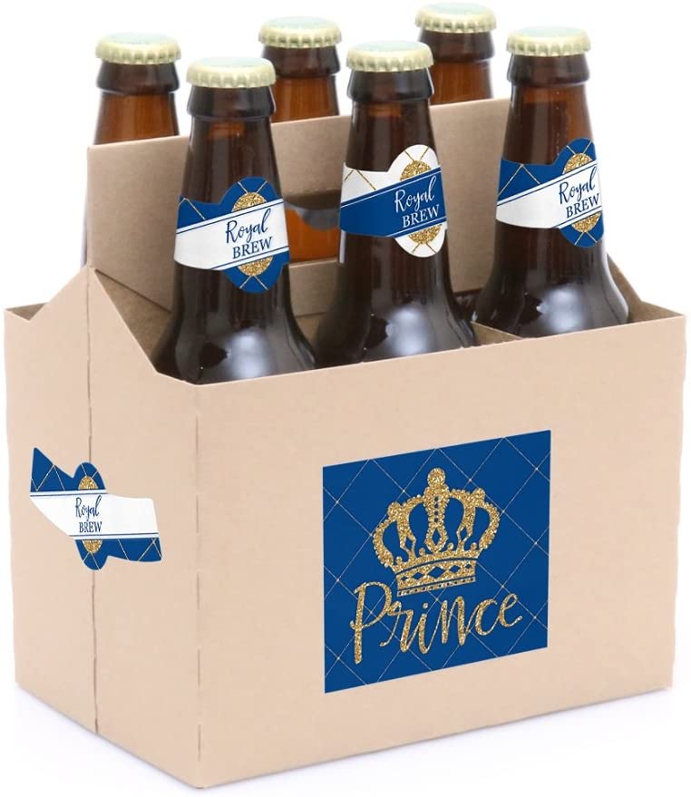 Royal Prince Charming - Baby Shower or Birthday Party Decorations for Women and Men - 6 Beer Bottle Label Stickers and 1 Carrier is backordered and will ship as soon as it is back in stock.