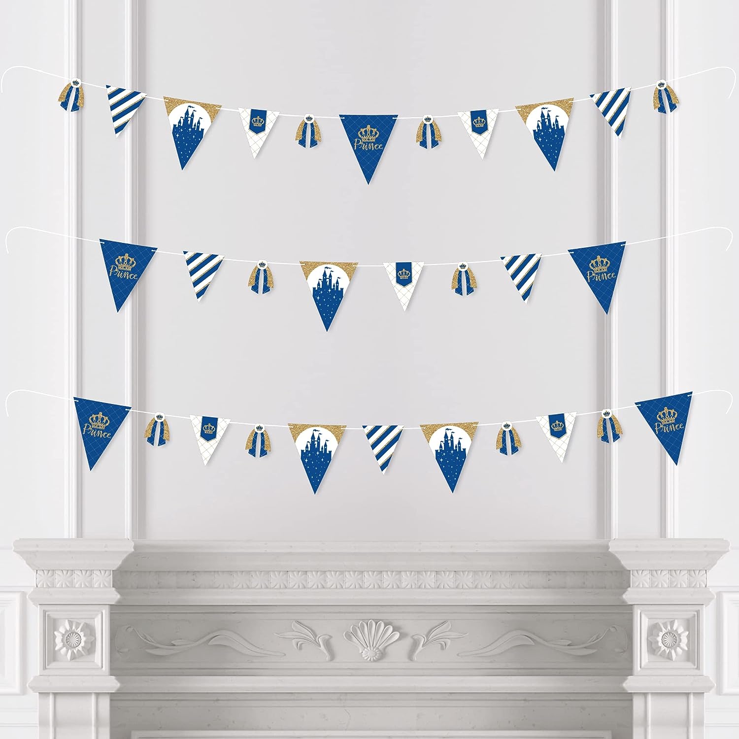 • Playful Party Decor: Royal Prince Charming paper triangles will look wonderful in all areas of your celebration. Hang the banner against the wall for a festive look. Use it as part of your photo booth backdrop or attach the banner along your table for a charming and easy decoration.