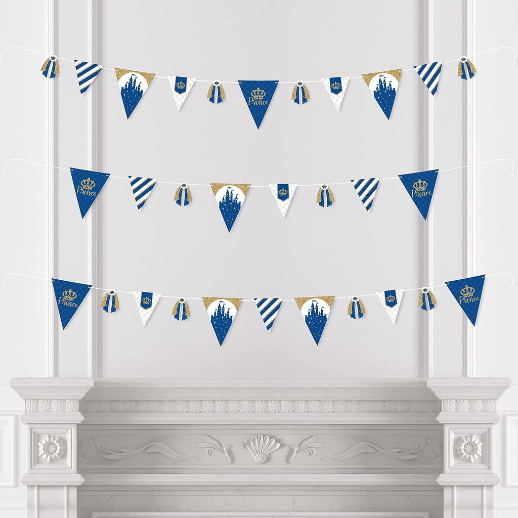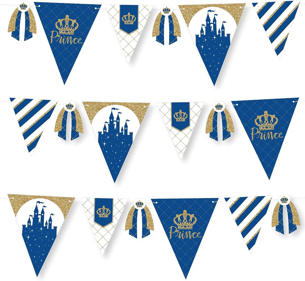 Royal Prince Charming - DIY Baby Shower or Birthday Party Pennant Garland Decoration - Triangle Banner - 30 Pieces