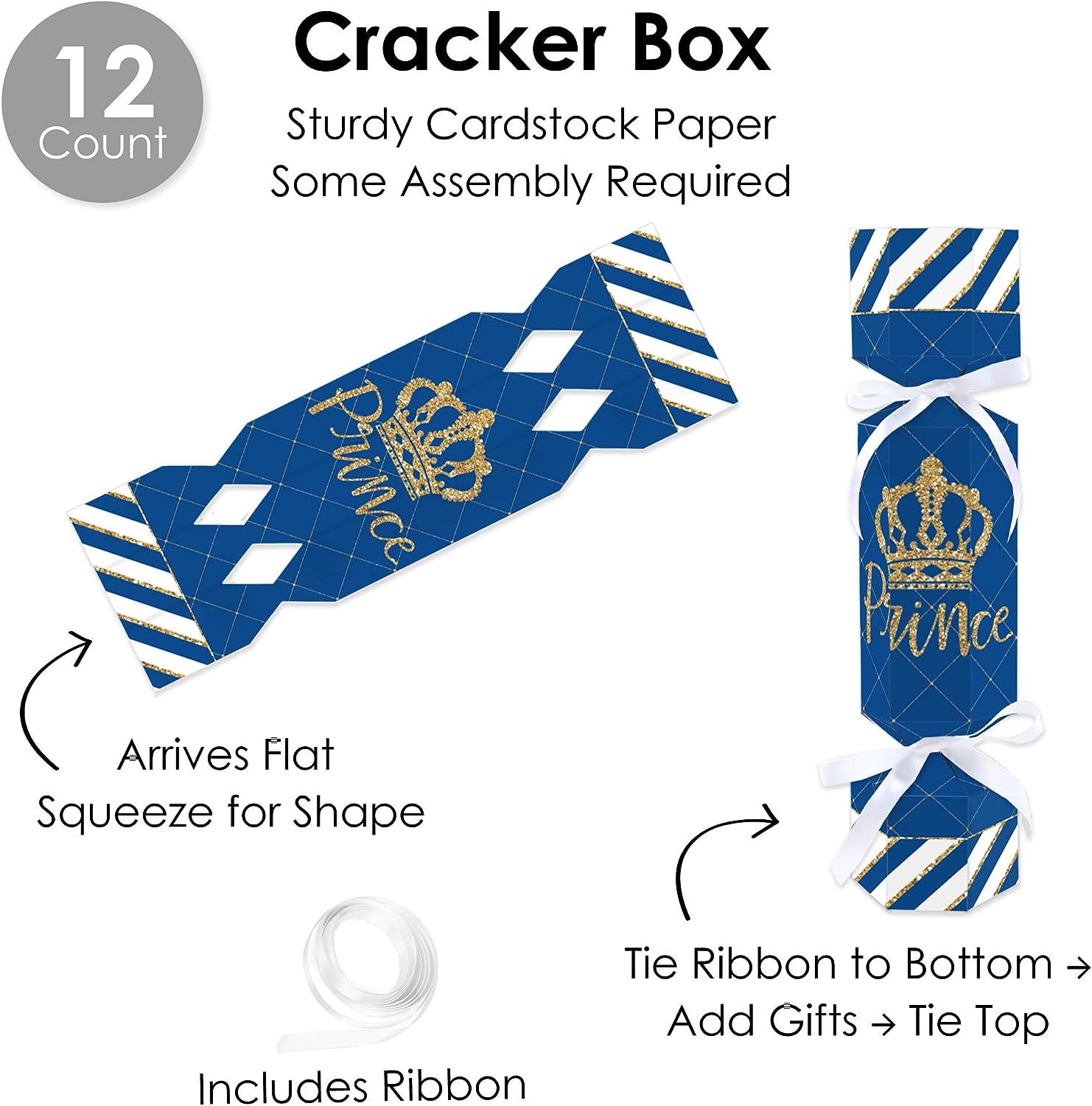 Royal Prince Charming - No Snap Baby Shower or Birthday Party Table Favors - DIY Cracker Boxes - Set of 12 is backordered and will ship as soon as it is back in stock.