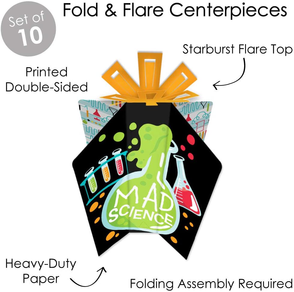 Scientist Lab - Table Decorations - Mad Science Baby Shower or Birthday Party Fold and Flare Centerpieces - 10 Count