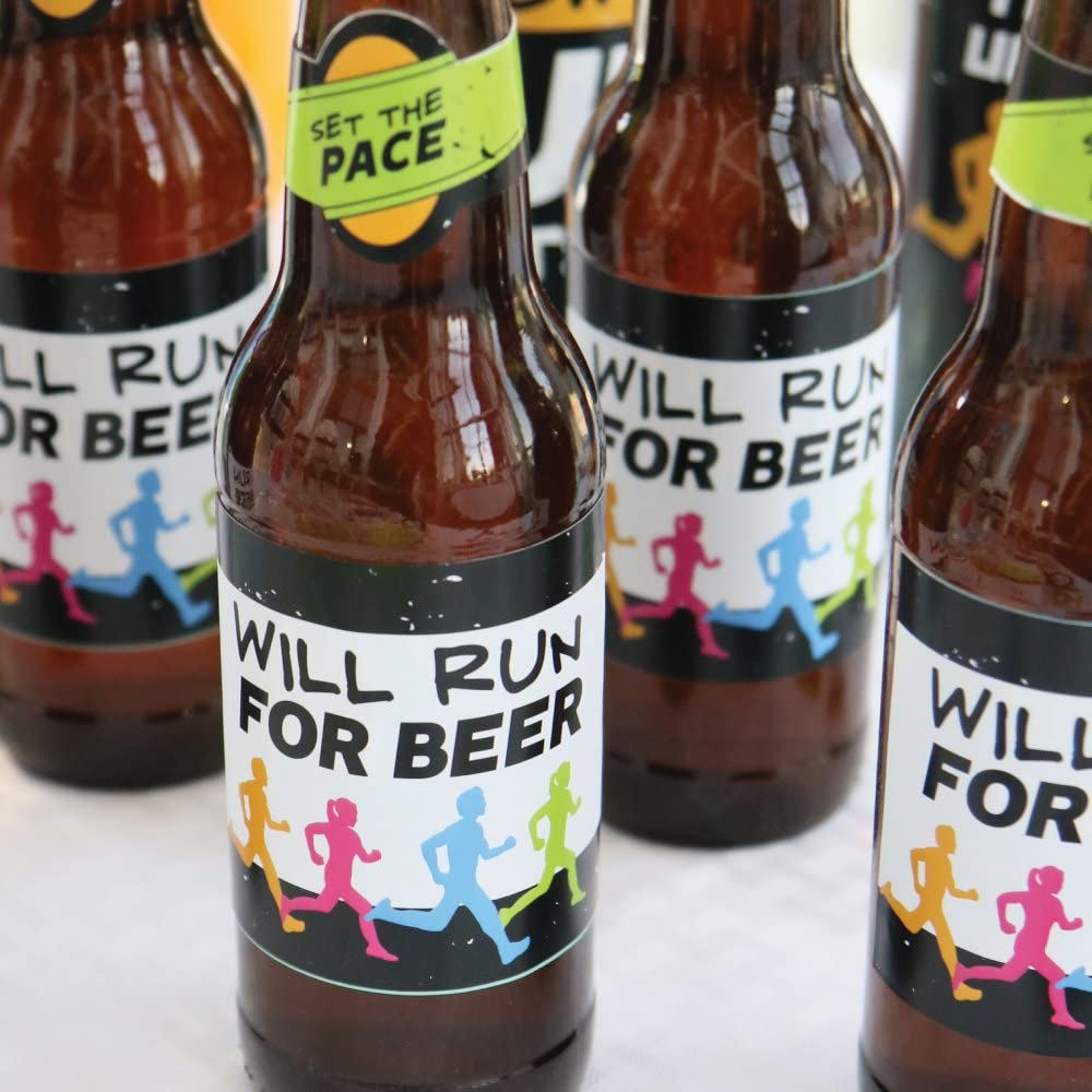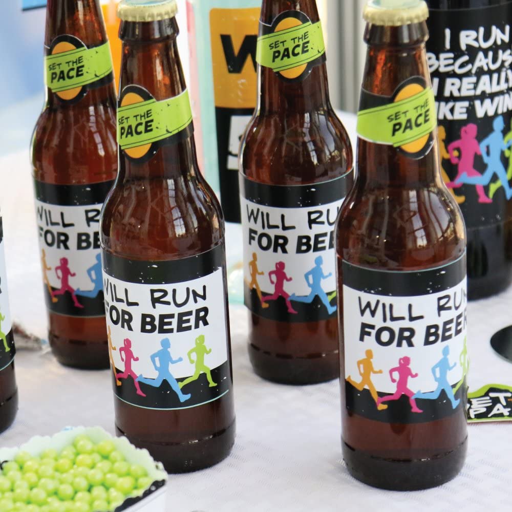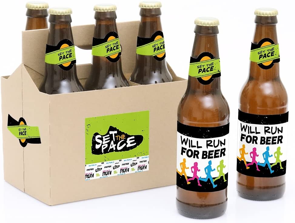 Set the Pace - Running - Track, Cross Country or Marathon Party Decorations for Women and Men - 6 Soda Beer Bottle Label Stickers and 1 Carrier is backordered and will ship as soon as it is back in stock.