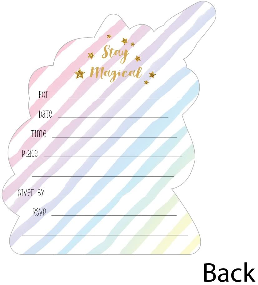 Shaped Fill-In Invitations - Magical Unicorn Baby Shower or Birthday Party Invitation Cards with Envelopes - Set of 12 is backordered and will ship as soon as it is back in stock.