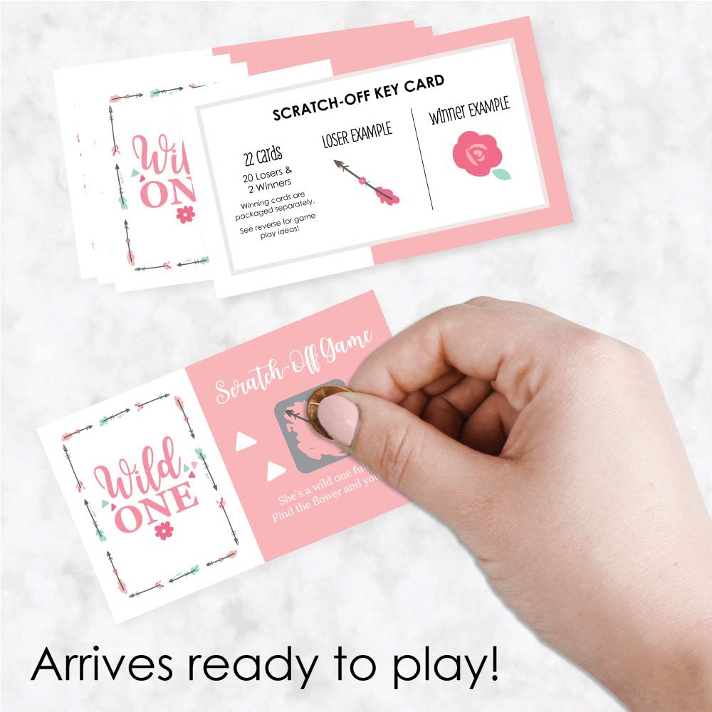 • She’s a Wild One Scratch-Off Cards INCLUDES 22 birthday party game cards: 20 "loser" cards and 2 "winner" cards.