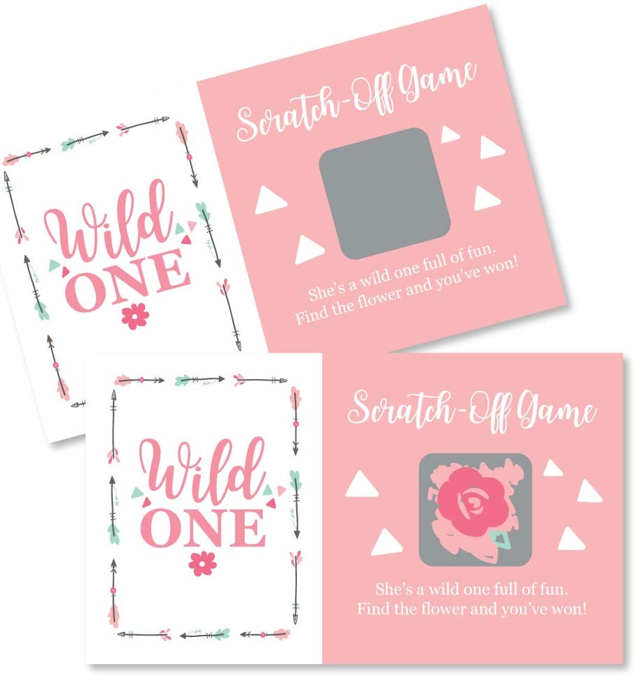 She's a Wild One - Boho Floral 1st Birthday Party Game Scratch Off Cards - 22 Count