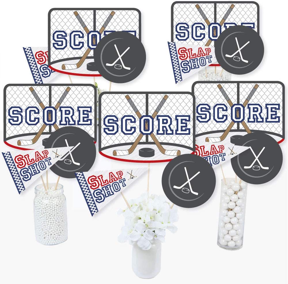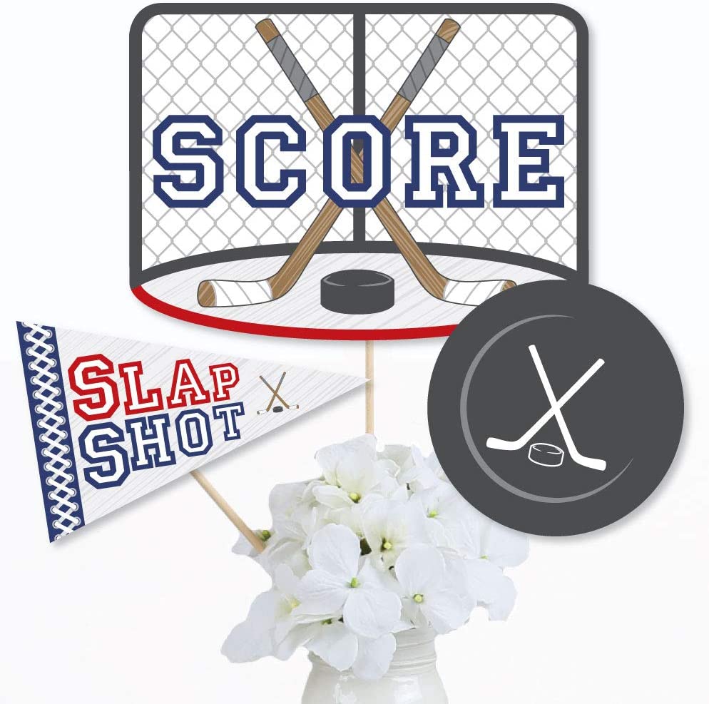 Shoots and Scores - Hockey - Baby Shower or Birthday Party Centerpiece Sticks - Table Toppers - Set of 15 is backordered and will ship as soon as it is back in stock.