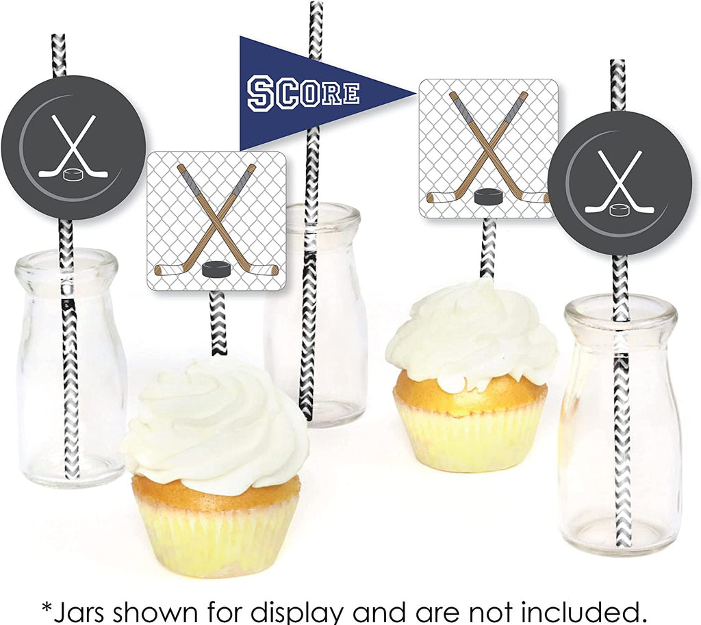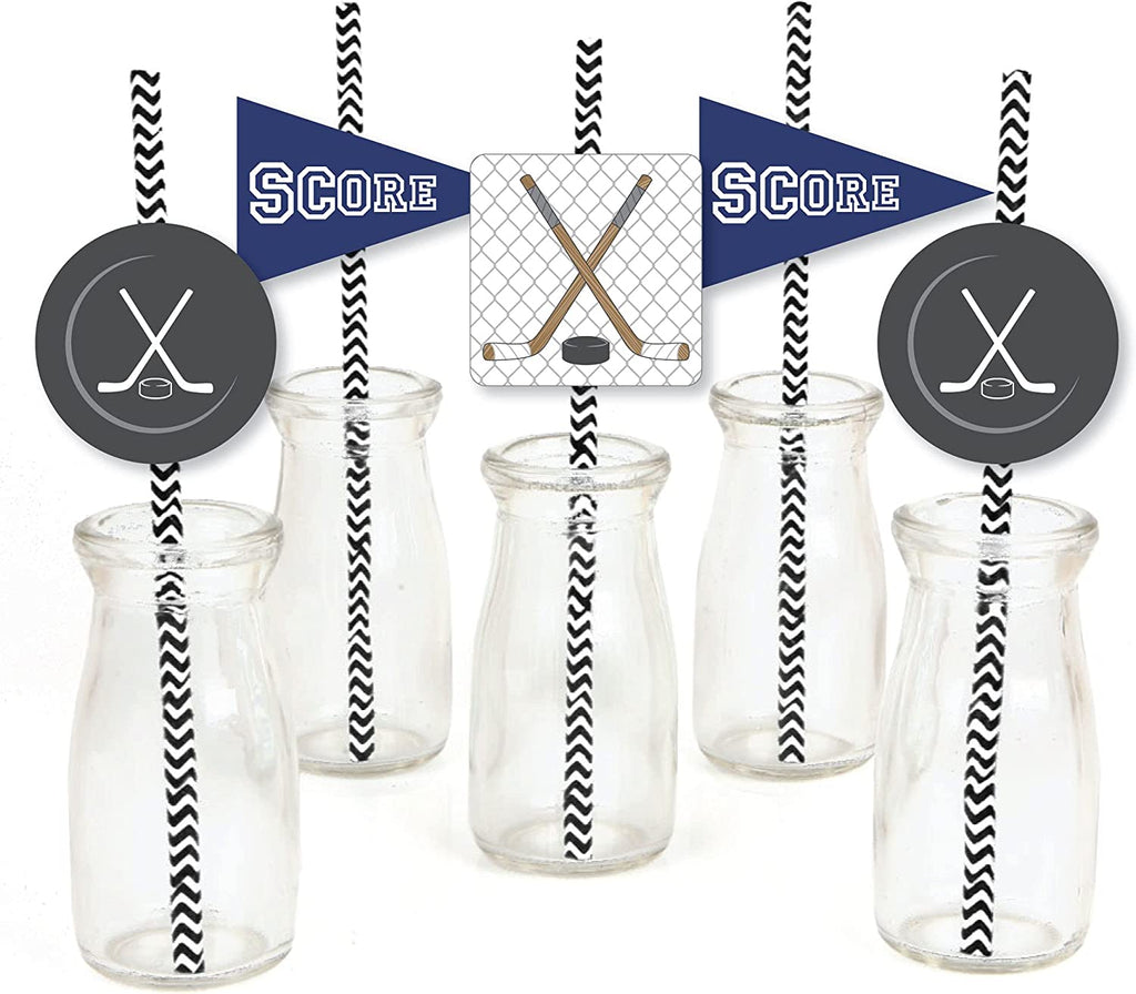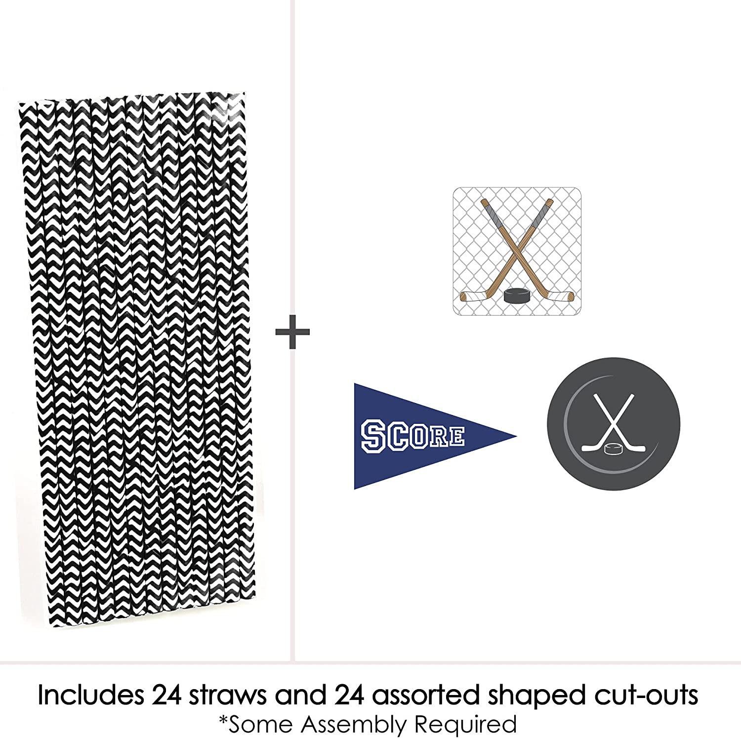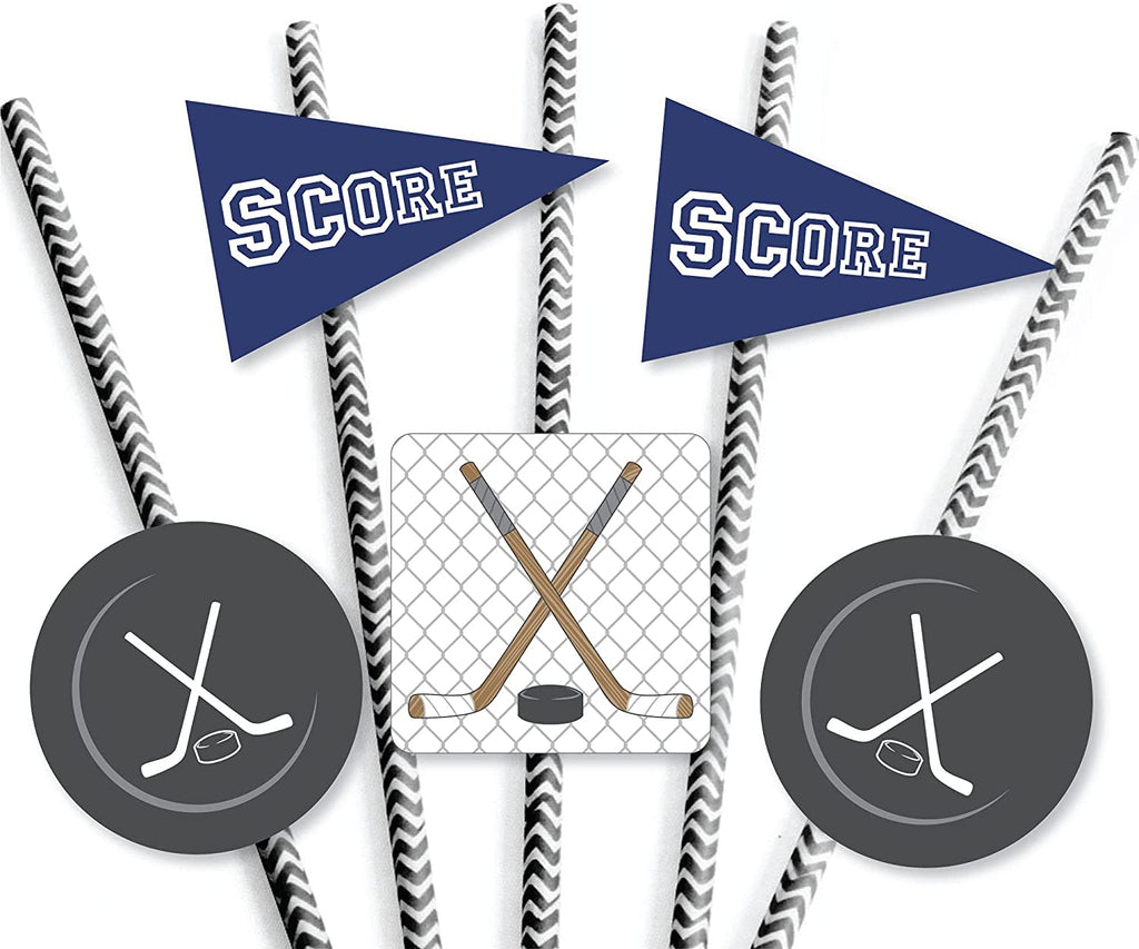 Shoots and Scores - Hockey Paper Straw Decor - Baby Shower or Birthday Party Striped Decorative Straws - Set of 24 is backordered and will ship as soon as it is back in stock.